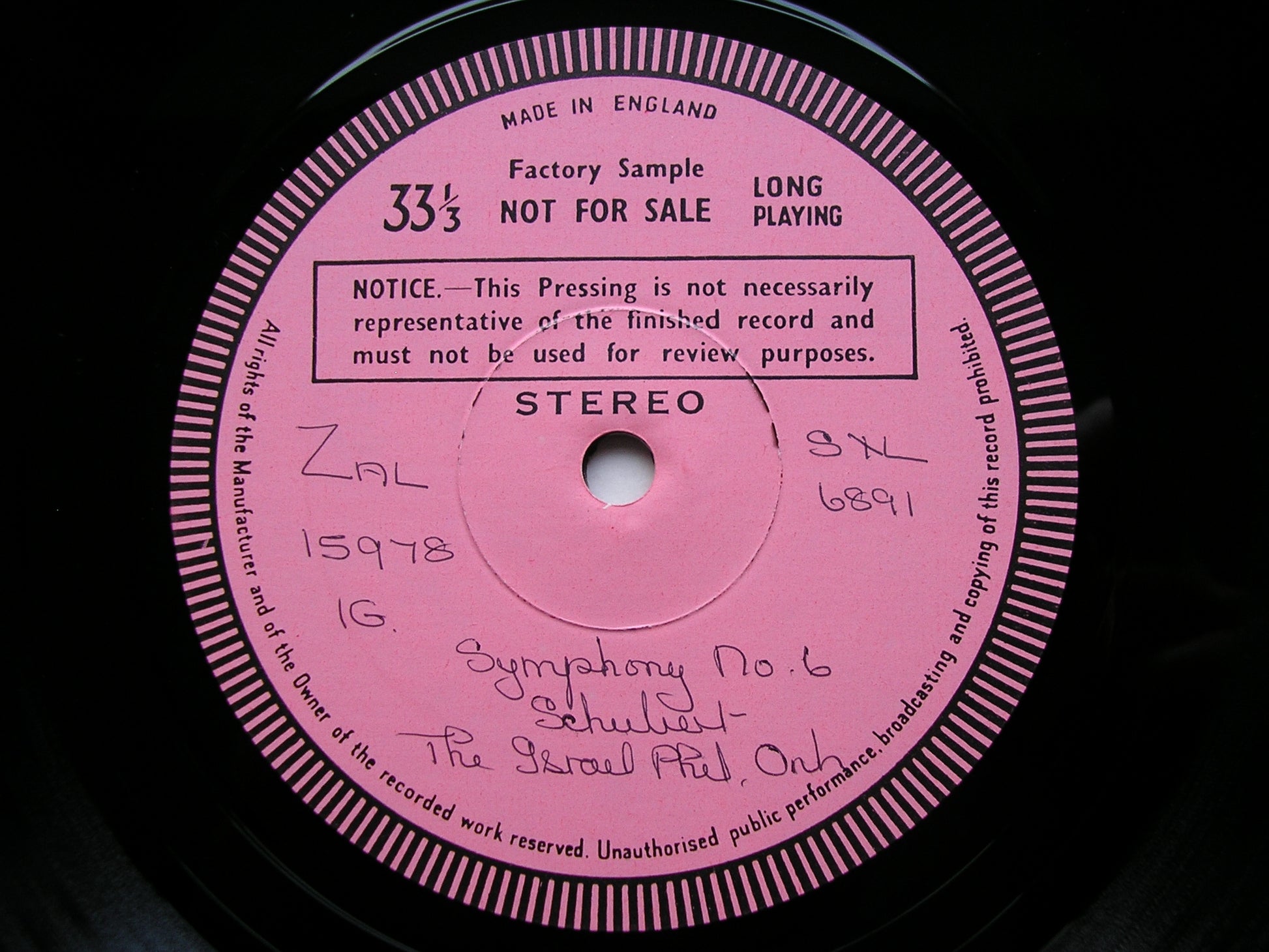SCHUBERT: SYMPHONY No. 6 / ROSAMUNDE MEHTA / ISRAEL PHILHARMONIC test pressing SXL 6891