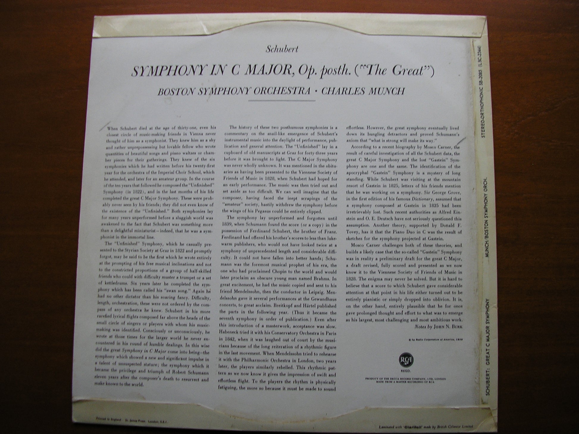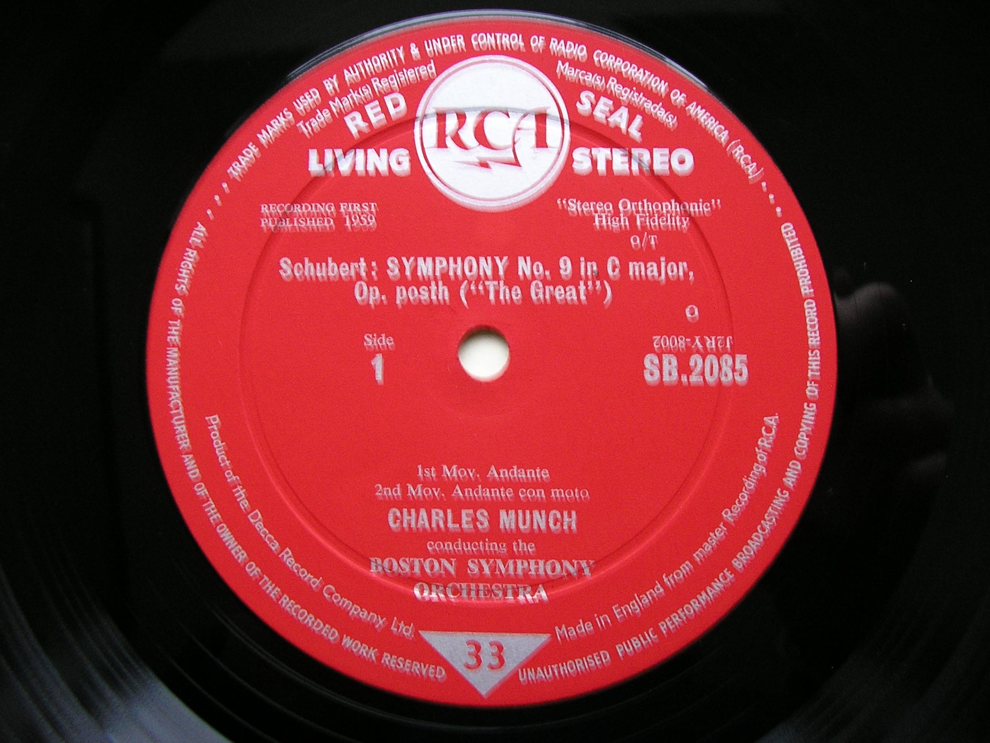 SCHUBERT: SYMPHONY No. 9 'Great C major' CHARLES MUNCH / BOSTON SYMPHONY ORCHESTRA SB 2085