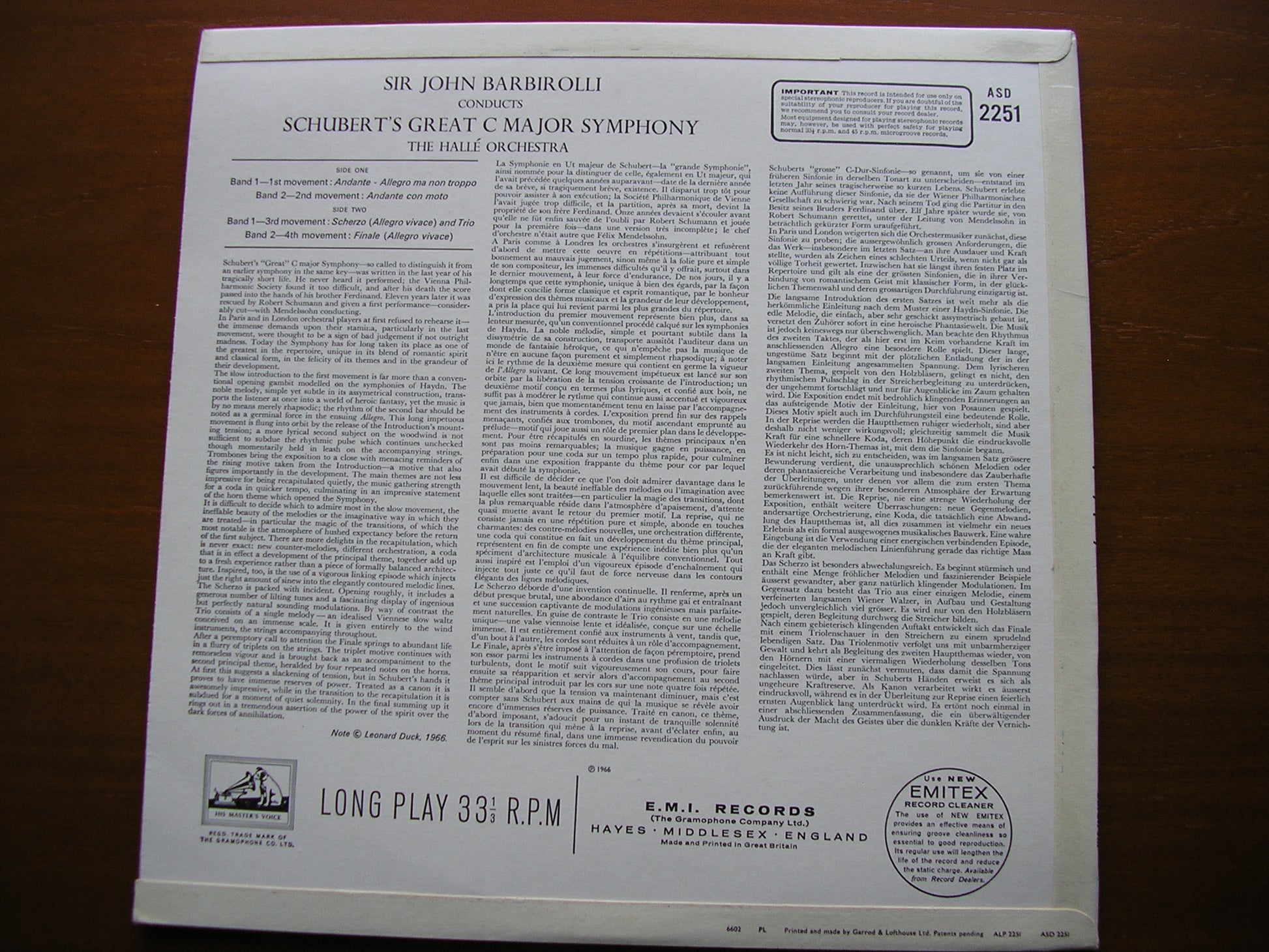 ASD 2251  SCHUBERT: SYMPHONY No. 9     SIR JOHN BARBIROLLI / HALLE ORCHESTRA