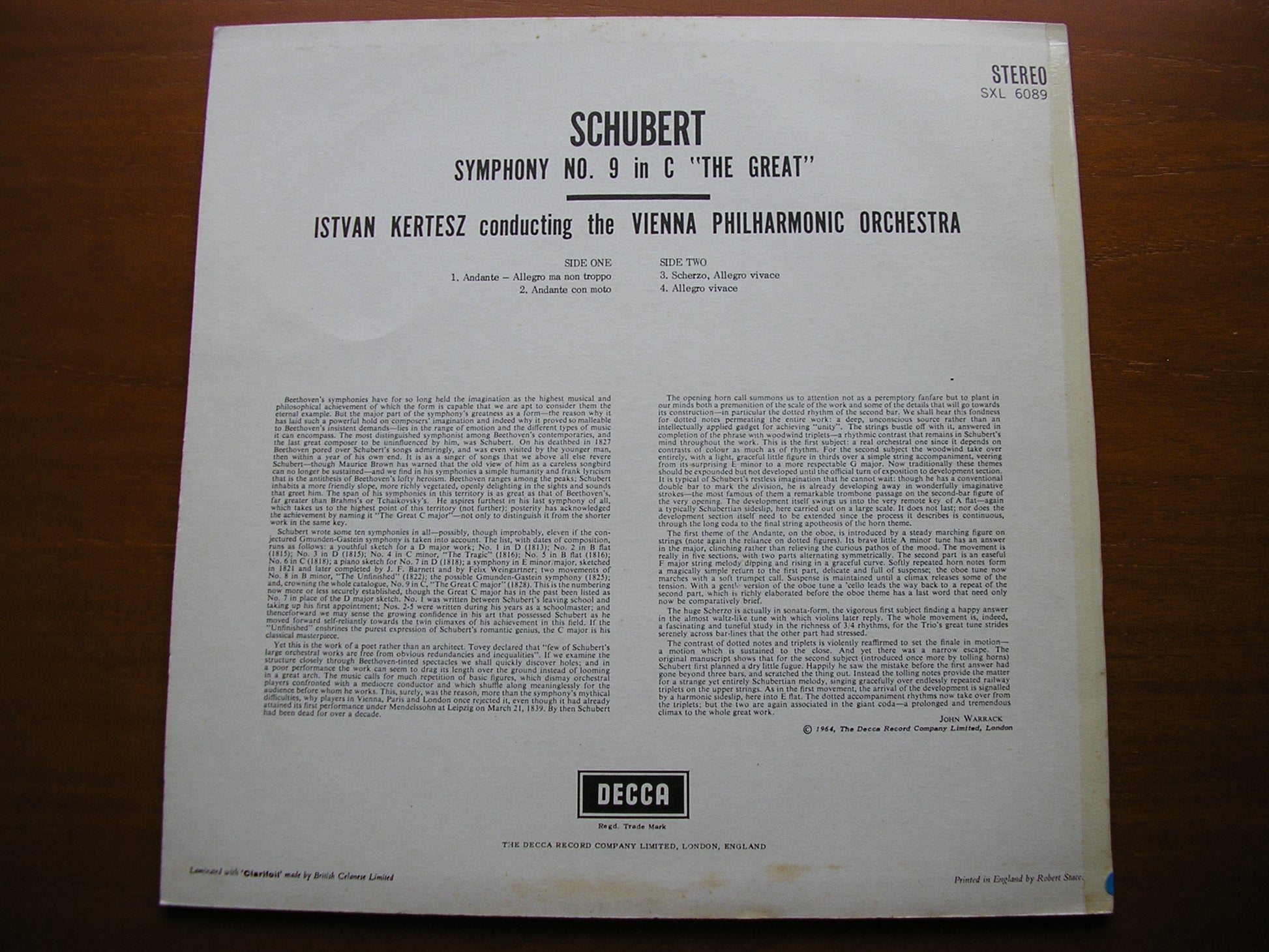 SXL 6089  SCHUBERT: SYMPHONY No. 9    ISTVAN KERTESZ / VIENNA PHILHARMONIC ORCHESTRA