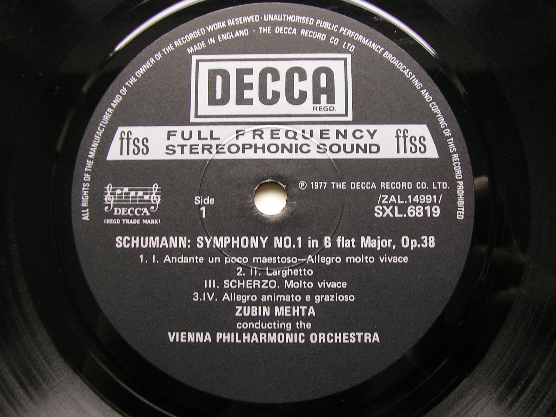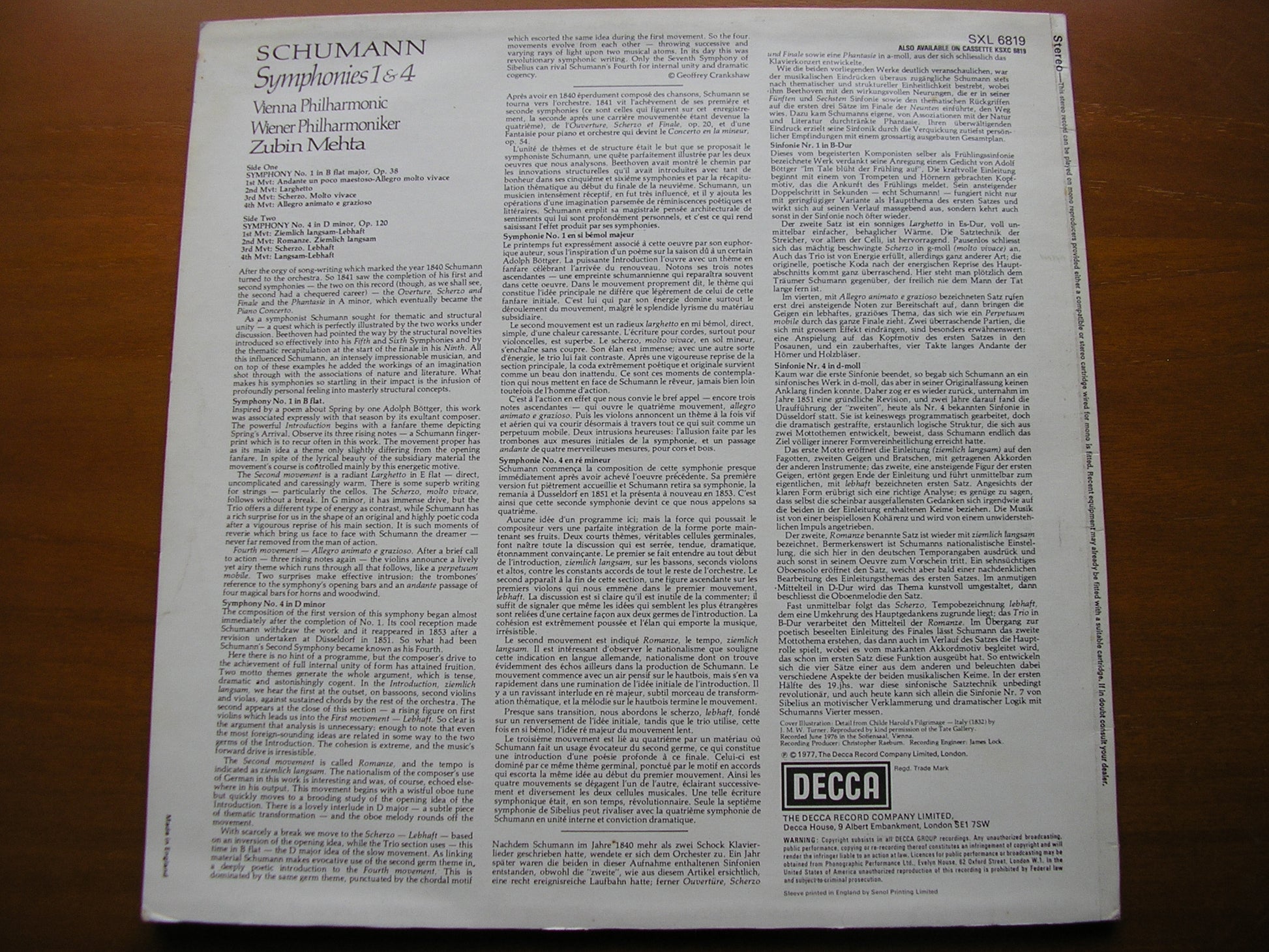 SXL 6819  SCHUMANN: SYMPHONIES NOs. 1 & 4      ZUBIN MEHTA / VIENNA PHILHARMONIC ORCHESTRA