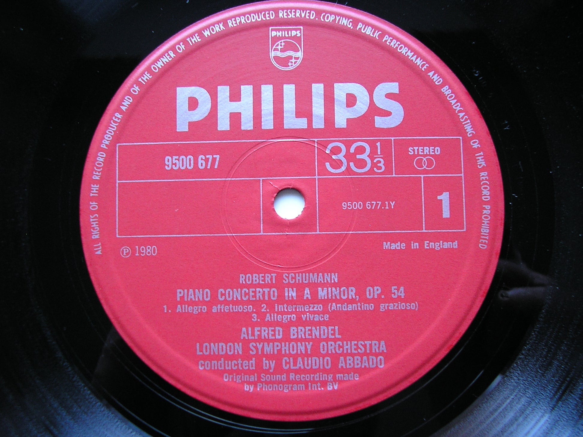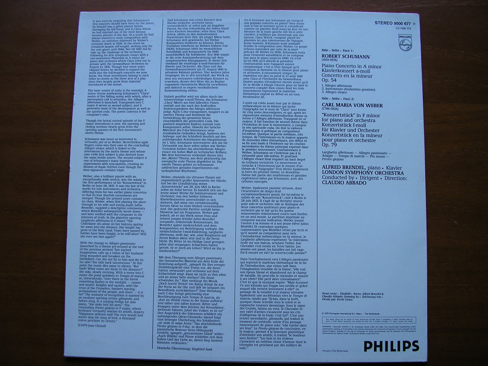 9500 677  SCHUMANN: PIANO CONCERTO / WEBER: KONZERTSTUCK      ALFRED BRENDEL / LONDON SYMPHONY ORCHESTRA / CLAUDIO ABBADO