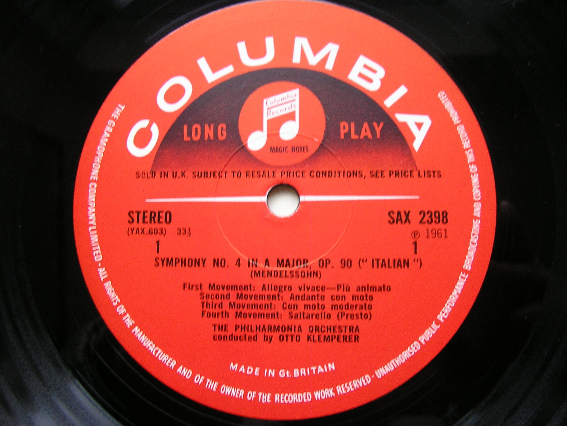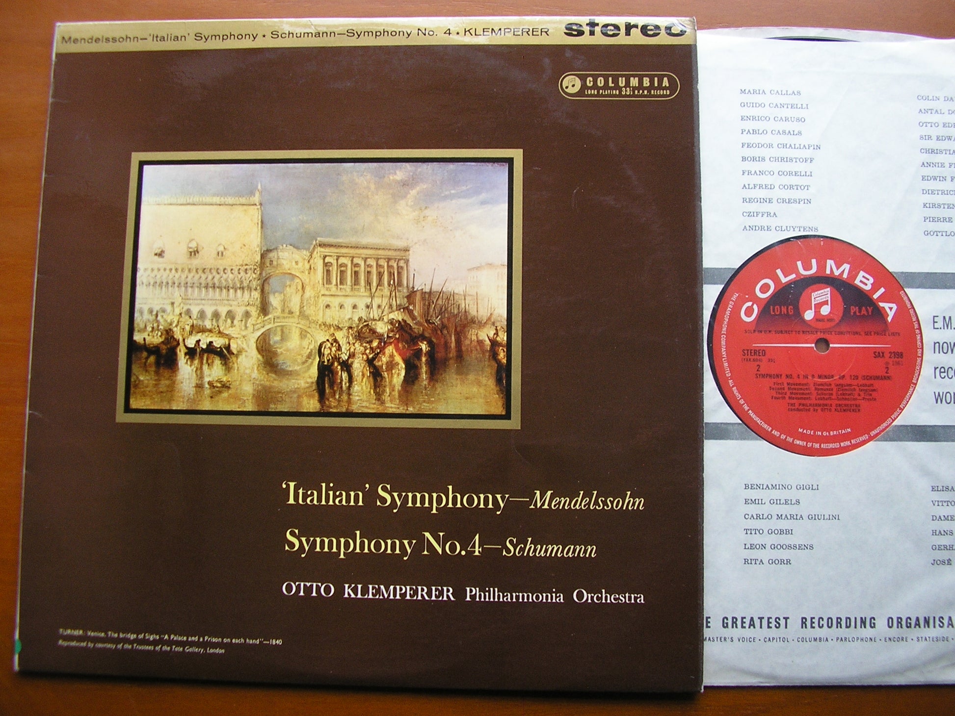 SCHUMANN: SYMPHONY No. 4 / MENDELSSOHN: ITALIAN SYMPHONY KLEMPERER / PHILHARMONIA SAX 2398