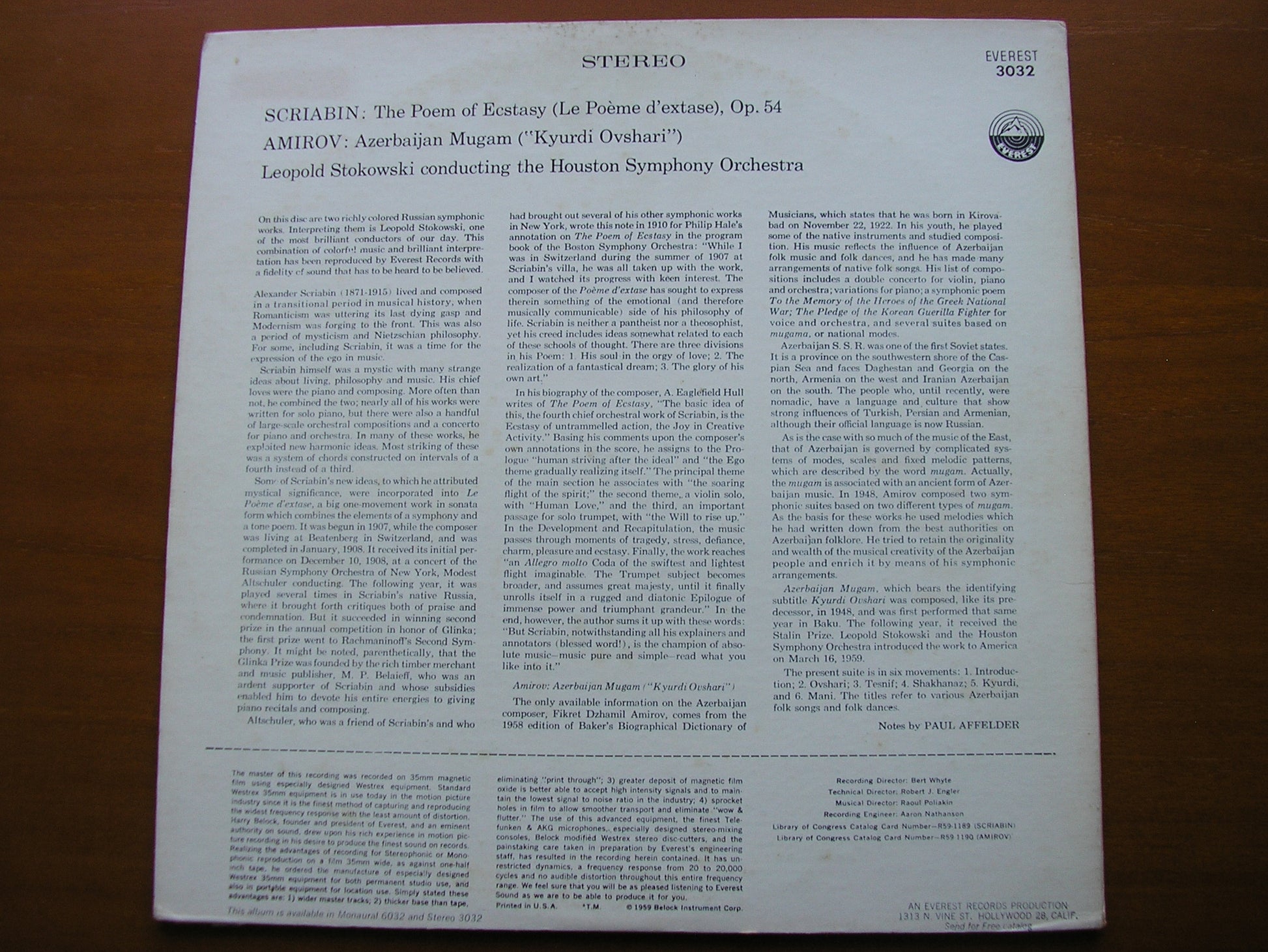 SDBR 3032  SCRIABIN: THE POEM OF ECSTASY / AMIROV: AZERBAIJAN MUGAM     LEOPOLD STOKOWSKI / HOUSTON SYMPHONY ORCHESTRA