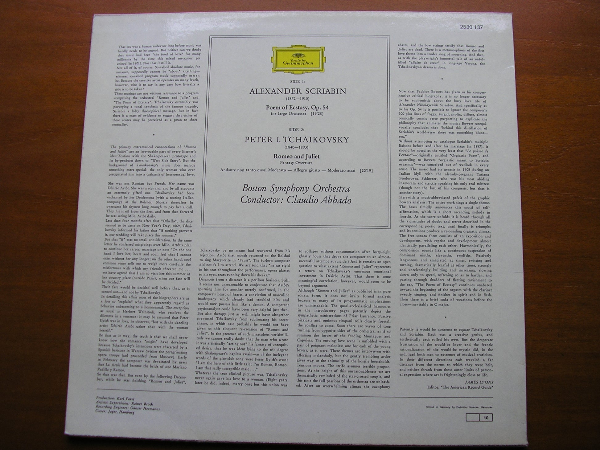 2530 137  SCRIABIN: POEM OF ECSTASY / TCHAIKOVSKY: ROMEO & JULIET    CLAUDIO ABBADO / BOSTON SYMPHONY ORCHESTRA