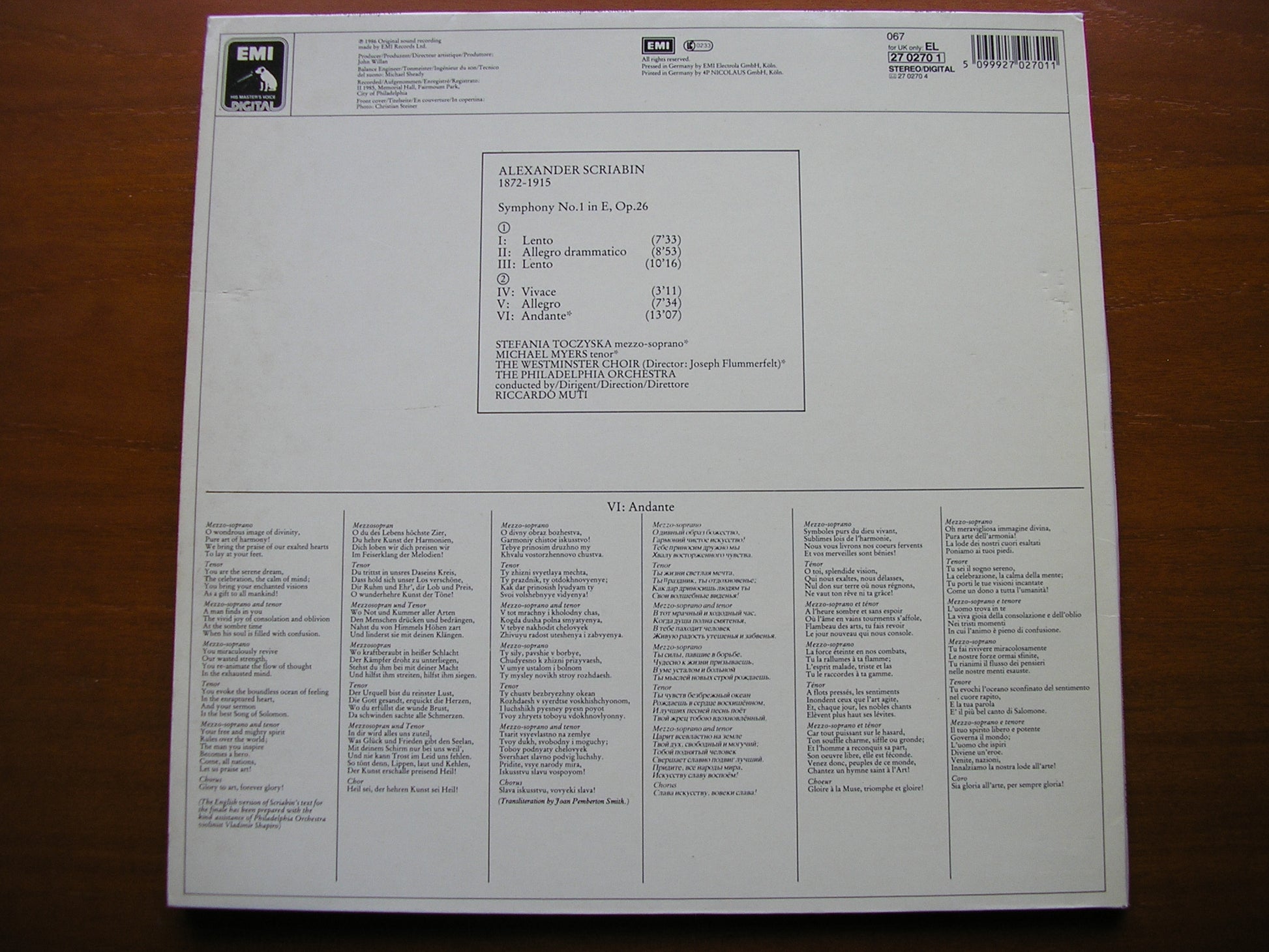 27 0270  SCRIABIN: SYMPHONY No. 1     STEFANIA TOCZYSKA / MICHAEL MYERS / PHILADELPHIA ORCHESTRA / RICCARDO MUTI
