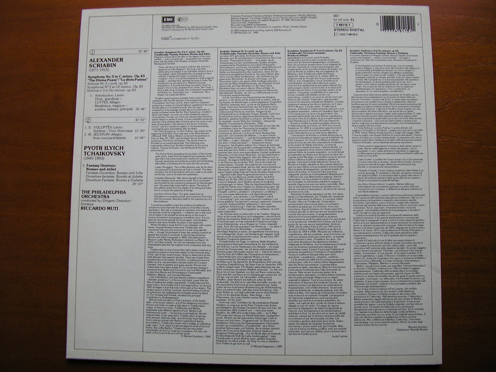 SCRIABIN: SYMPHONY No. 3 'The Divine Poem' / TCHAIKOVSKY: ROMEO & JULIET MUTI / PHILADELPHIA ORCHESTRA 749115