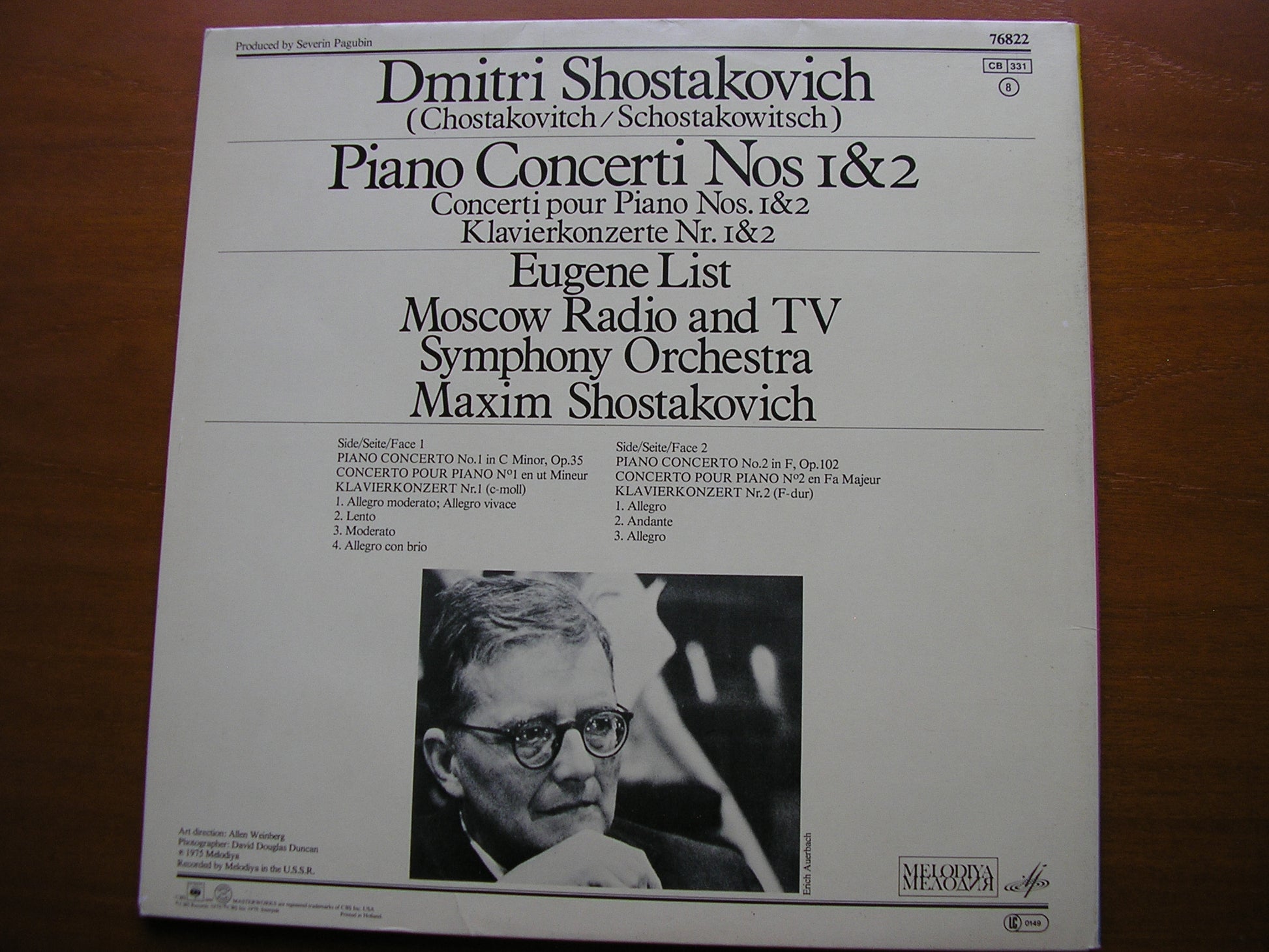 76822  SHOSTAKOVICH: PIANO CONCERTOS Nos. 1 & 2    EUGENE LIST / MOSCOW RADIO SYMPHONY ORCHESTRA / MAXIM SHOSTAKOVICH
