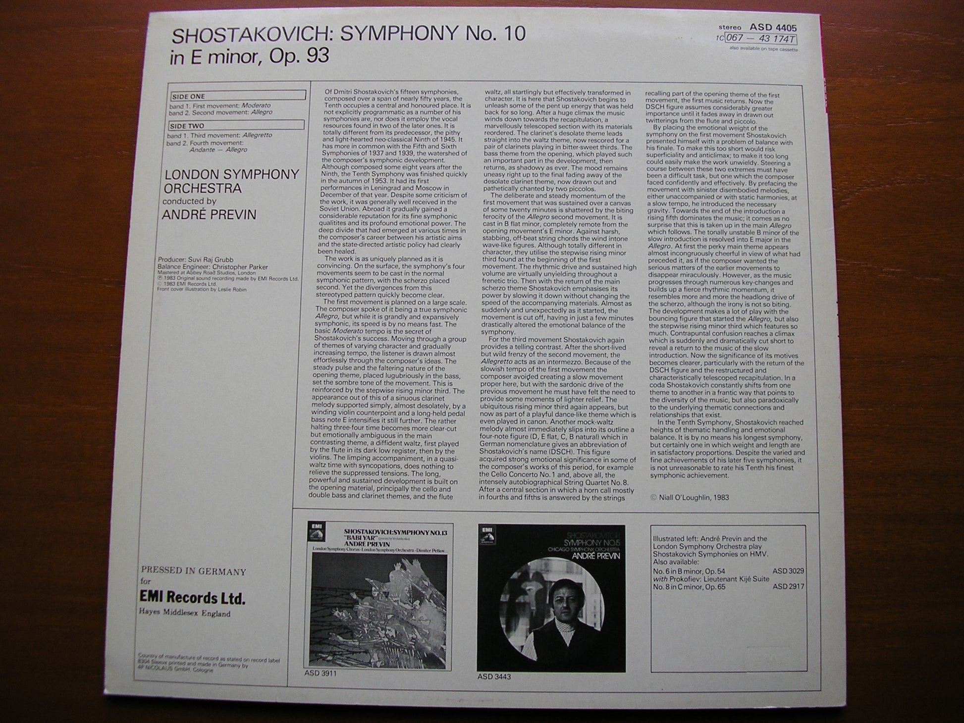 ASD 4405  SHOSTAKOVICH: SYMPHONY No. 10   ANDRE PREVIN / LONDON SYMPHONY ORCHESTRA
