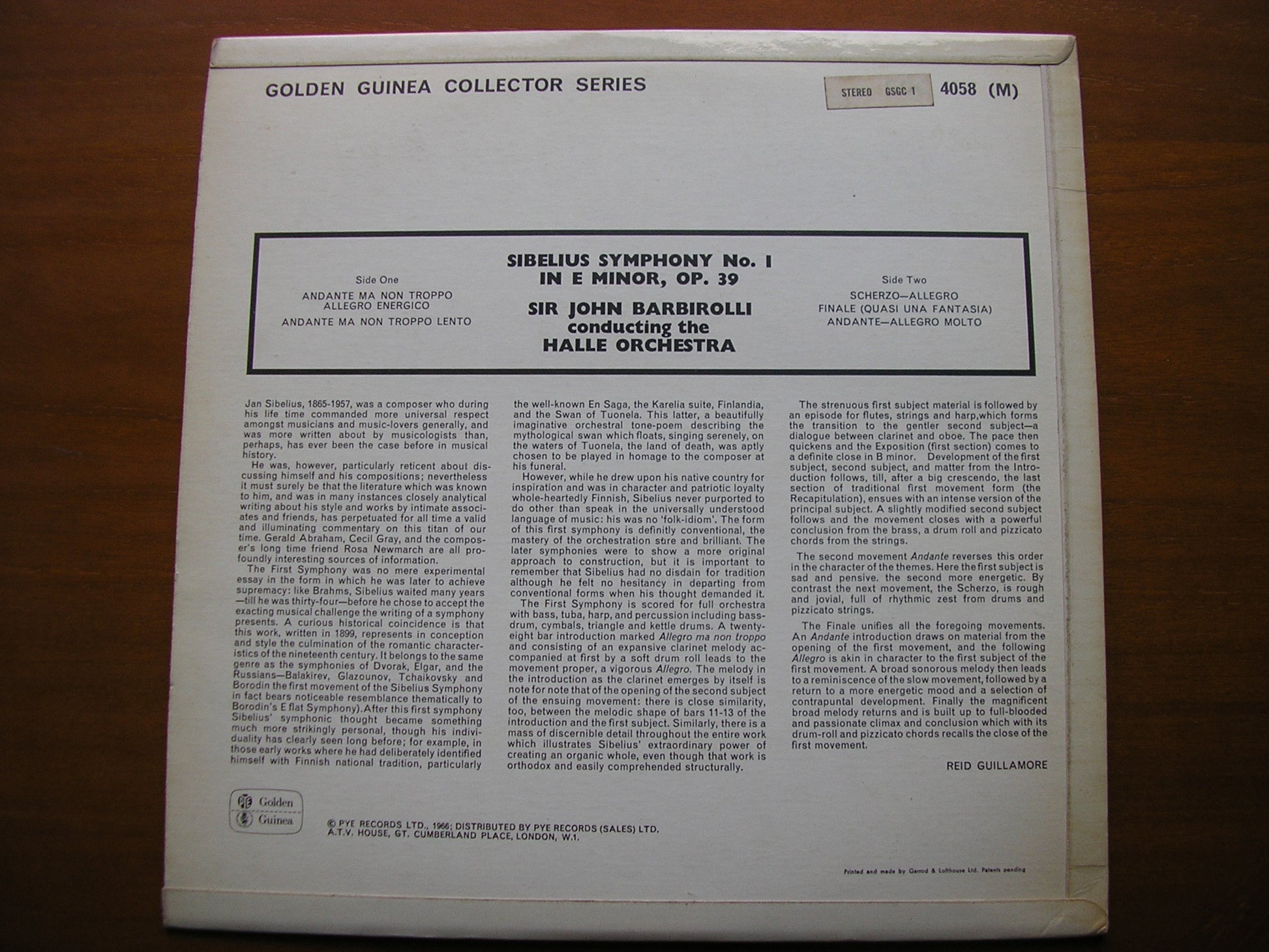 GSGC 14058  SIBELIUS: SYMPHONY No. 1     SIR JOHN BARBIROLLI / HALLE ORCHESTRA