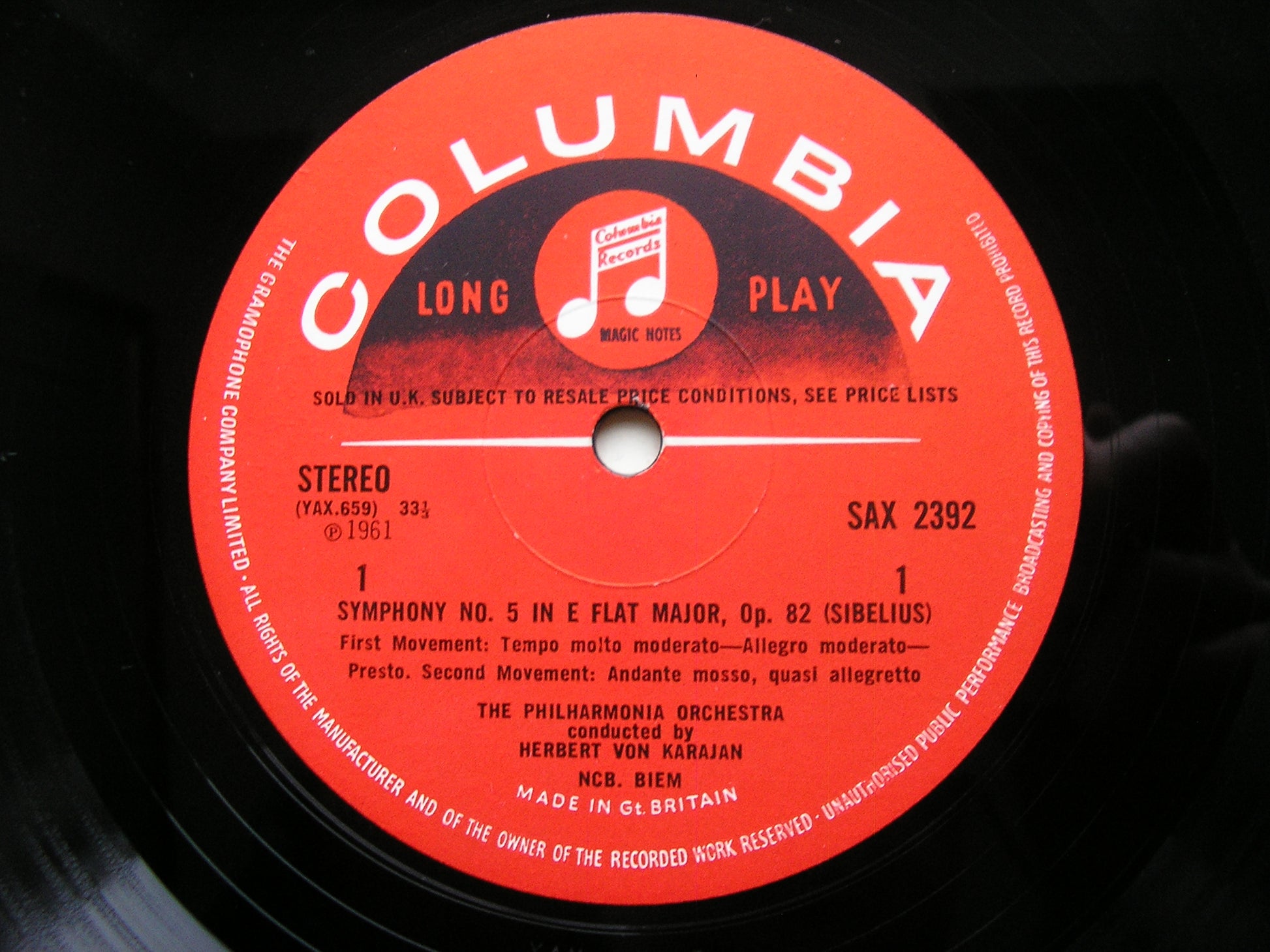 SAX 2392  SIBELIUS: SYMPHONY No. 5 / FINLANDIA      HERBERT VON KARAJAN / PHILHARMONIA ORCHESTRA