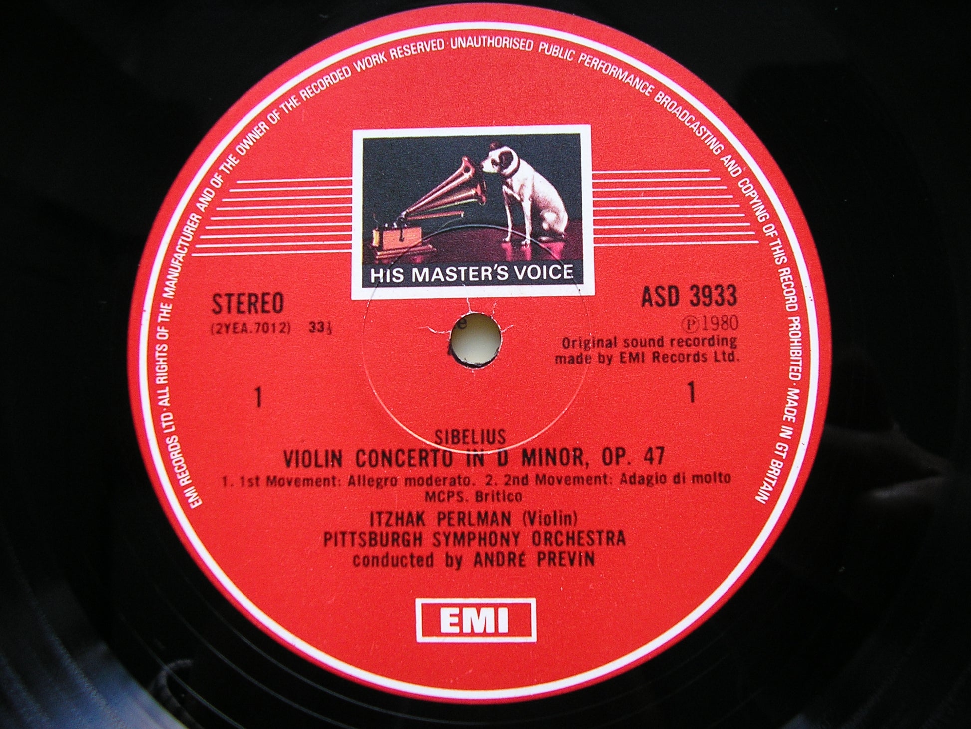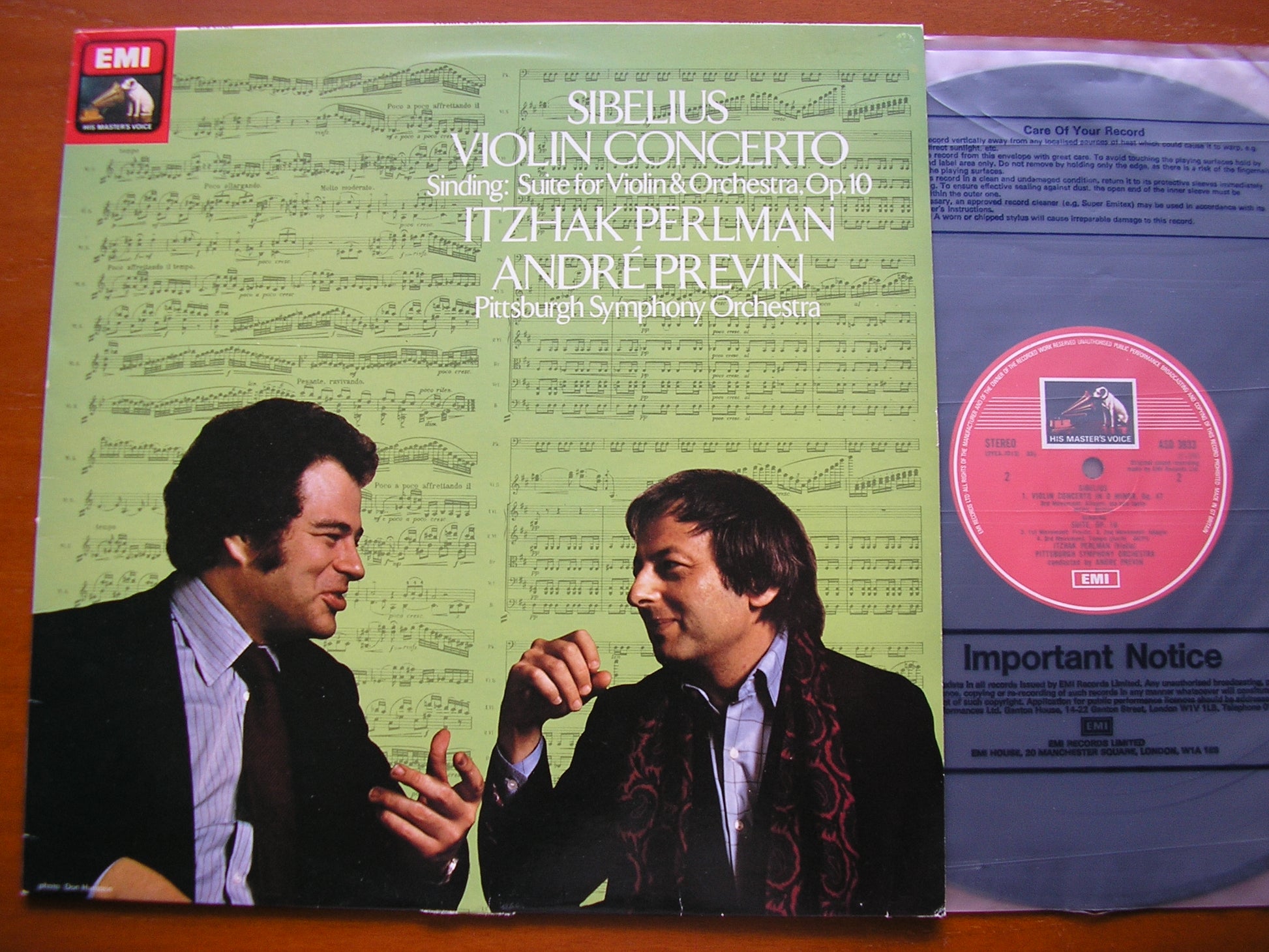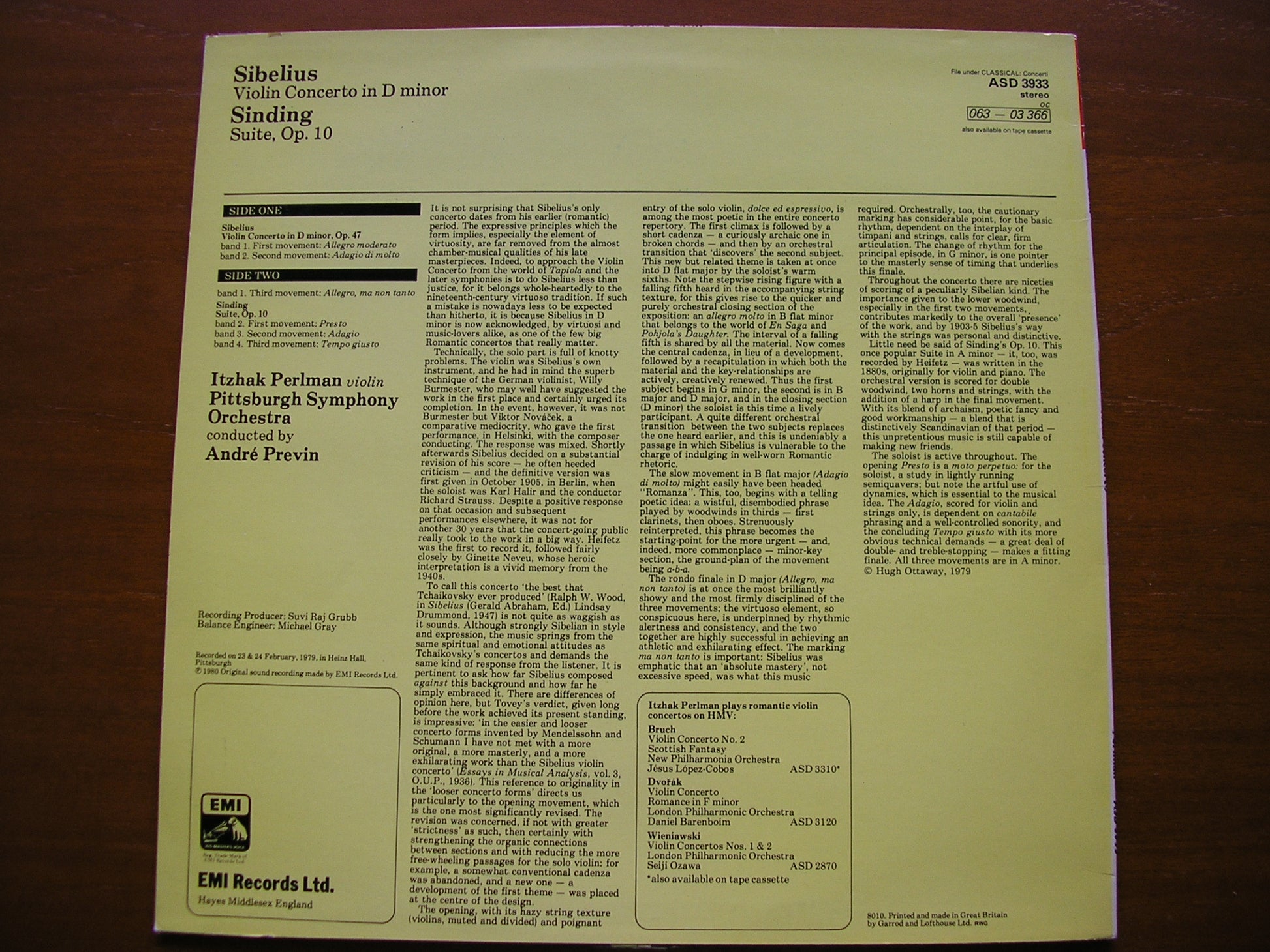 ASD 3933  SIBELIUS: VIOLIN CONCERTO / SINDING: SUITE FOR VIOLIN & ORCHESTRA    ITZHAK PERLMAN / PITTSBURGH SYMPHONY ORCHESTRA / ANDRE PREVIN