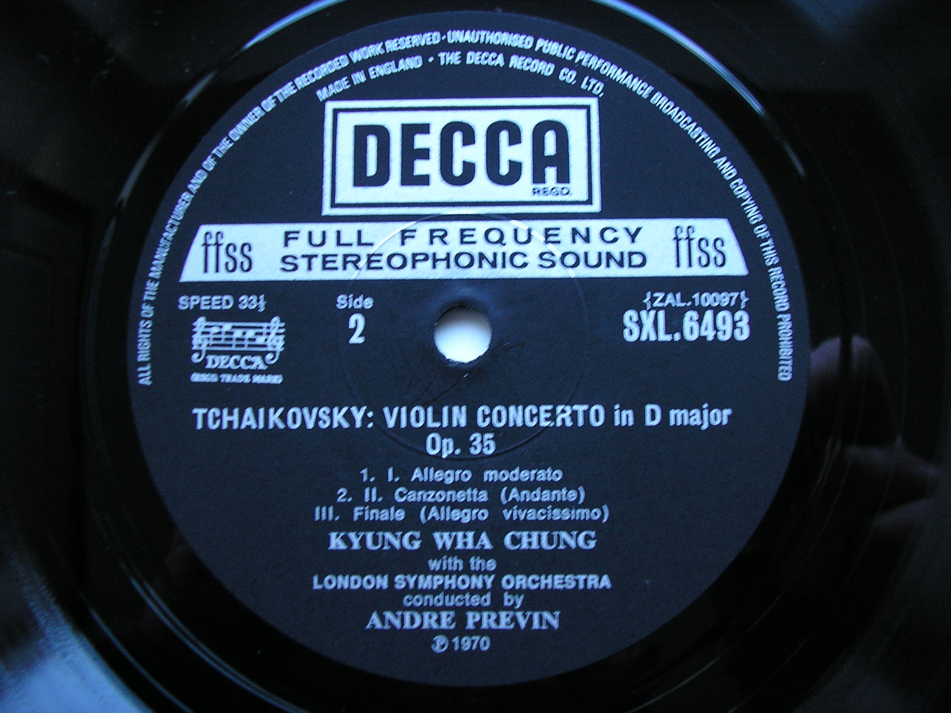 SXL 6493  SIBELIUS: VIOLIN CONCERTO / TCHAIKOVSKY: VIOLIN CONCERTO   KYUNG-WHA CHUNG / LONDON SYMPHONY ORCHESTRA / ANDRE PREVIN