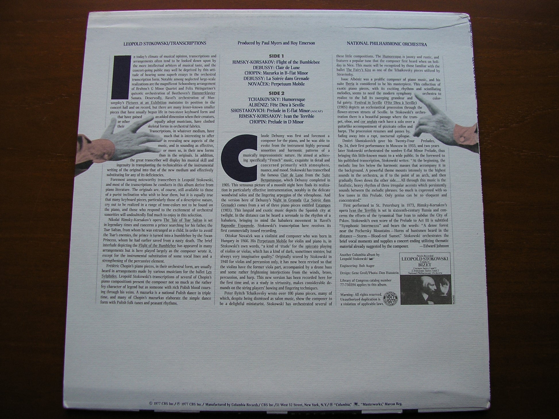 M 34543  STOKOWSKIAN TRANSCRIPTIONS OF WORKS BY RIMSKY-KORSAKOV / DEBUSSY / NOVACEK / CHOPIN / TCHAIKOVSKY / ALBENIZ / SHOSTAKOVICH   LEOPOLD STOKOWSKI / NATIONAL PHILHARMONIC ORCHESTRA