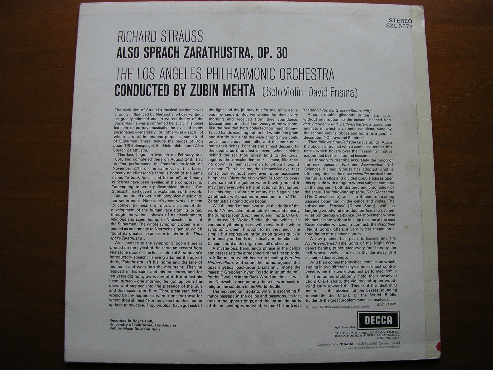 STRAUSS: ALSO SPRACH ZARATHUSTRA ZUBIN MEHTA / LOS ANGELES PHILHARMONIC SXL 6379