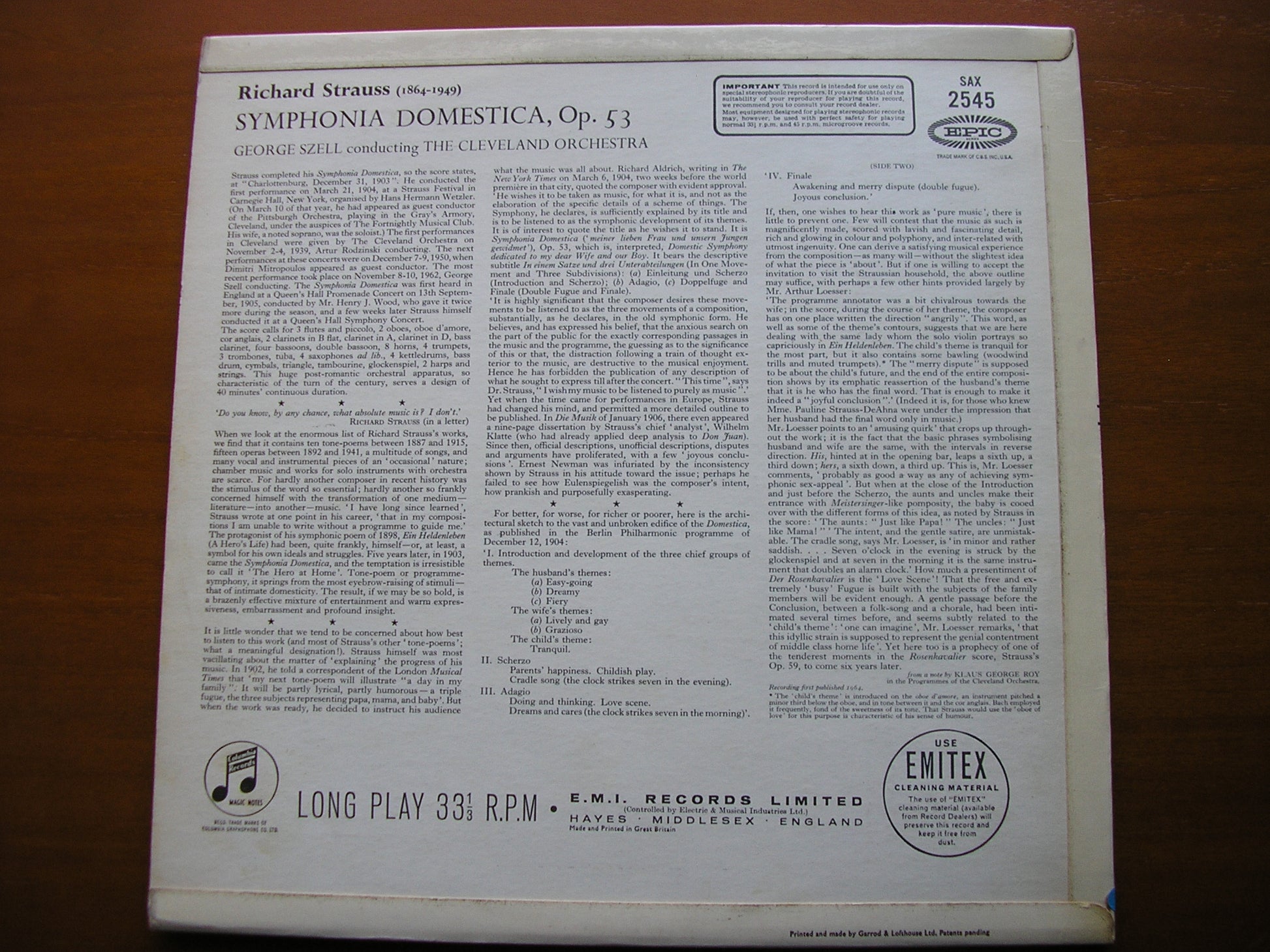 STRAUSS: SINFONIA DOMESTICA GEORGE SZELL / CLEVELAND ORCHESTRA SAX 2545