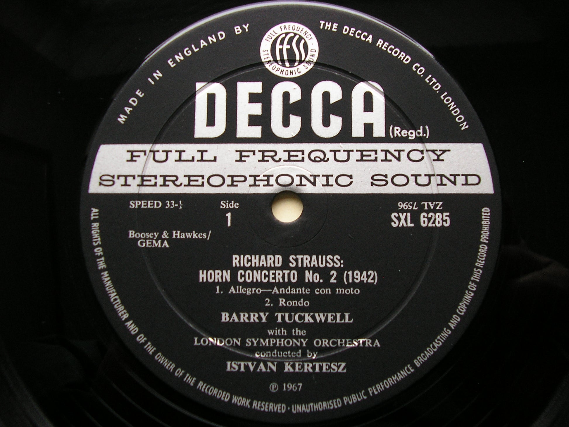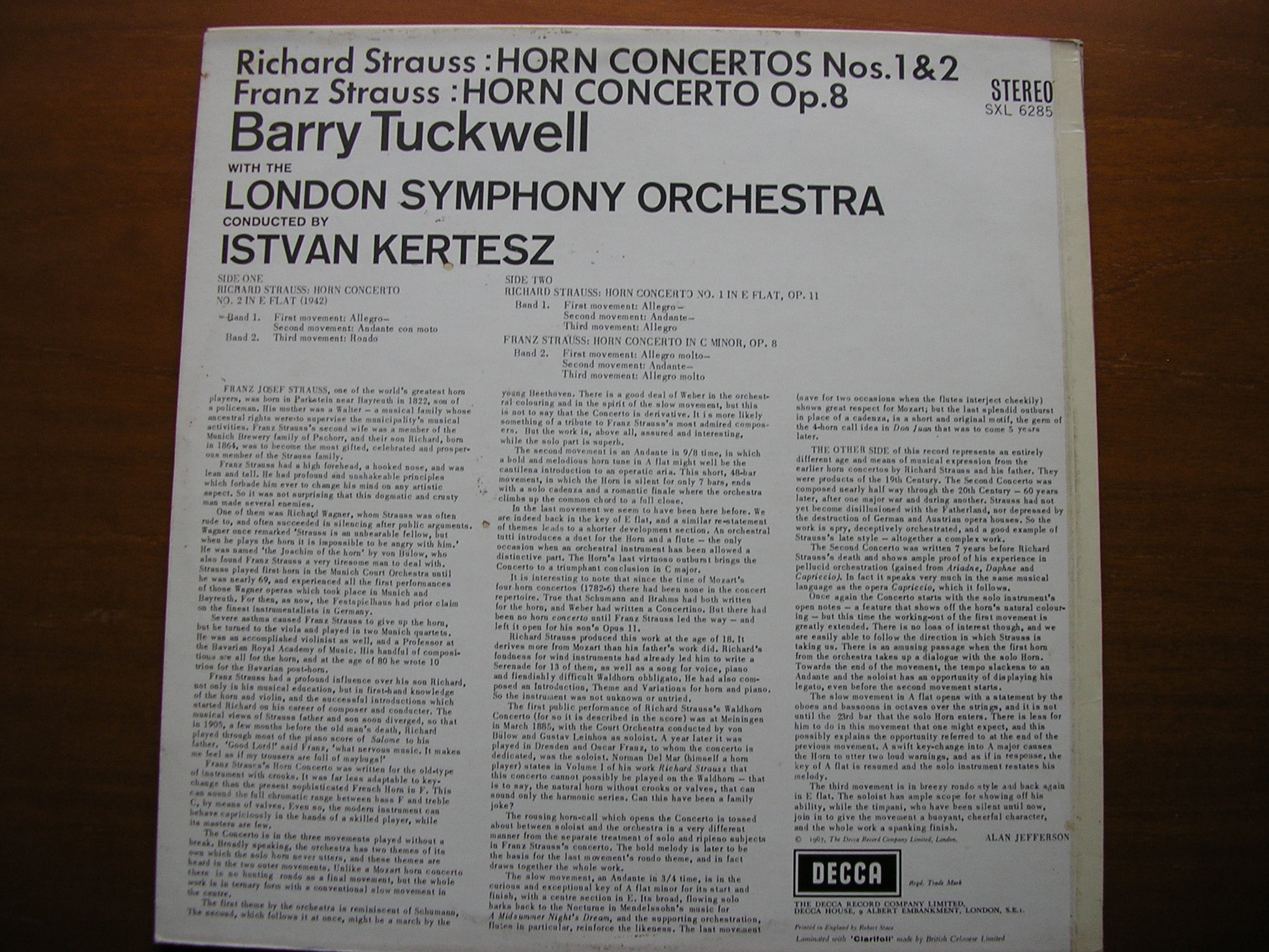 SXL 6285  STRAUSS: HORN CONCERTOS Nos. 1 & 2 / FRANZ STRAUSS: HORN CONCERTO in C     BARRY TUCKWELL / LONDON SYMPHONY ORCHESTRA / ISTVAN KERTESZ
