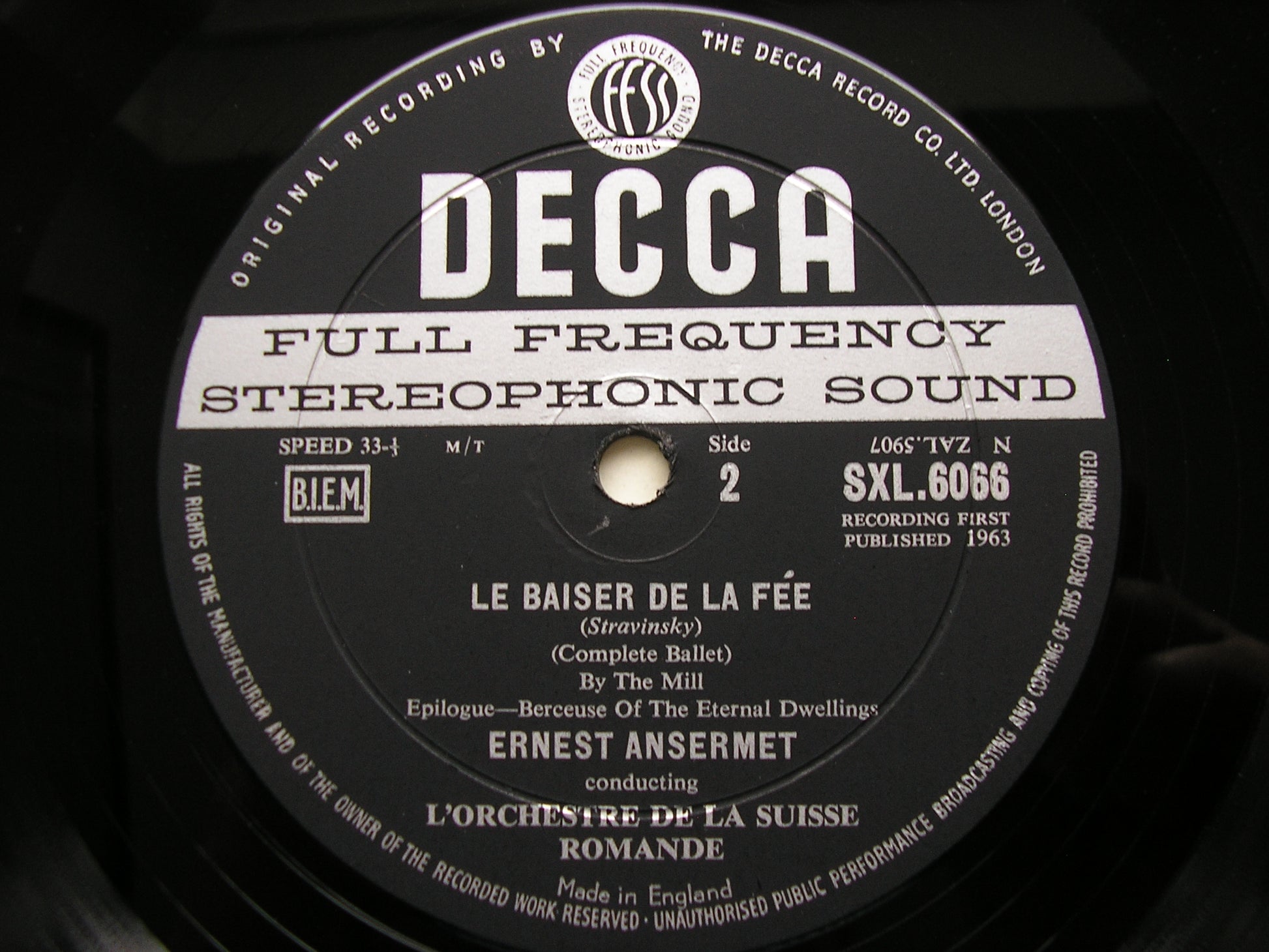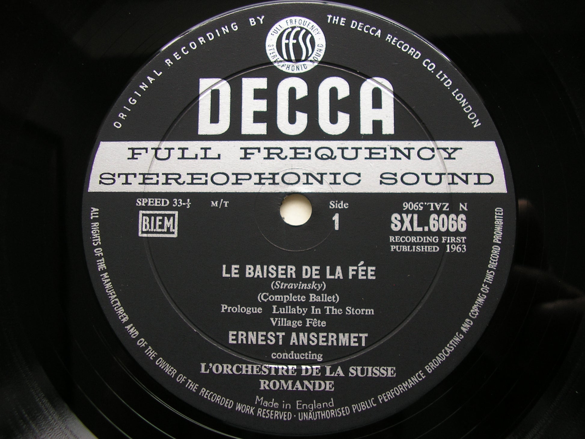 SXL 6066  STRAVINSKY: LE BAISER DE LA FEE   ERNEST ANSERMET / SUISSE ROMANDE ORCHESTRA