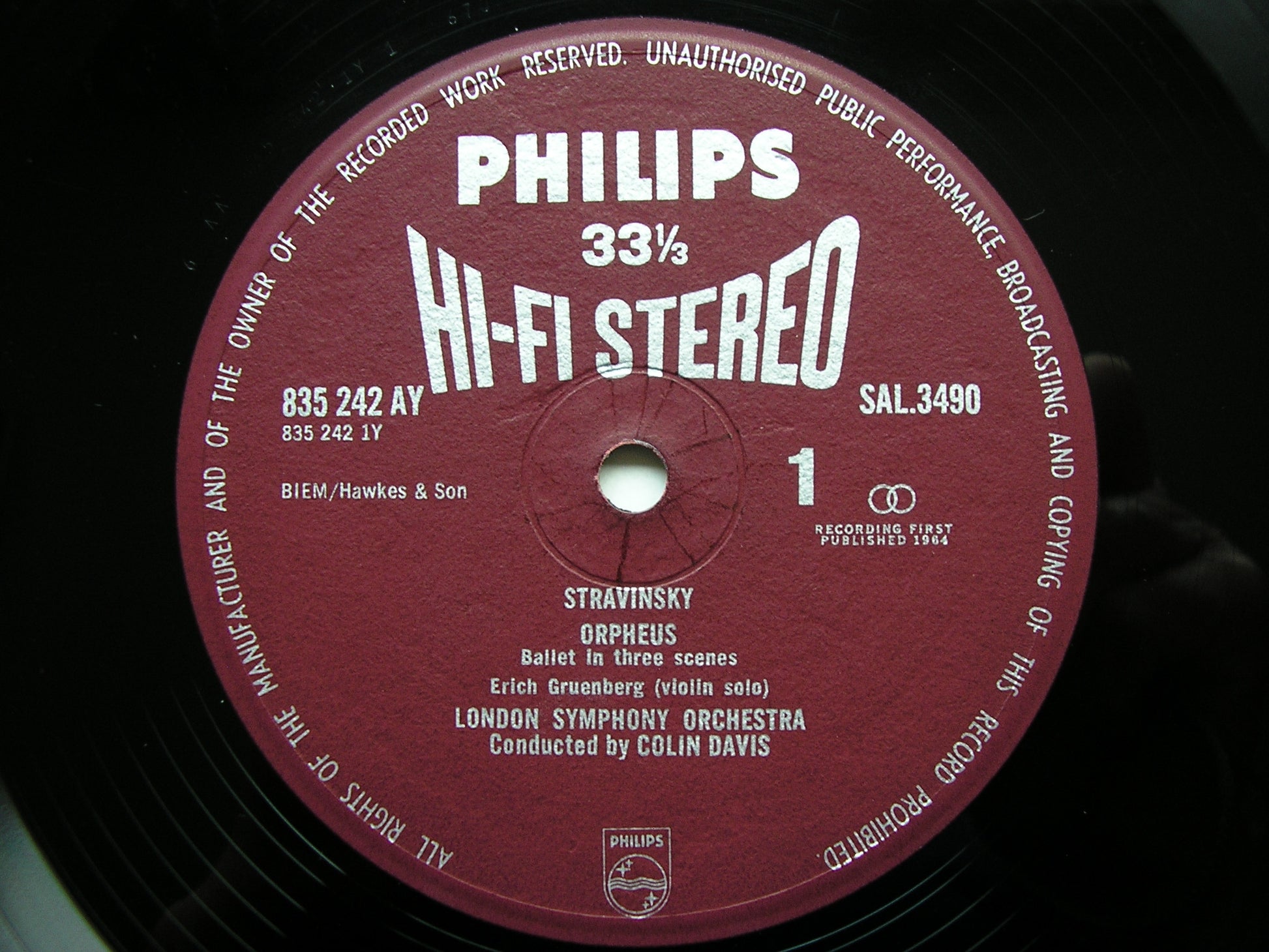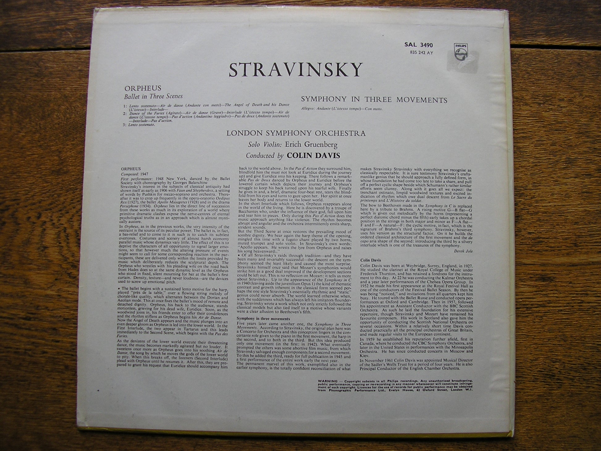 SAL 3490  STRAVINSKY: ORPHEUS / SYMPHONY IN THREE MOVEMENTS   COLIN DAVIS / LONDON SYMPHONY ORCHESTRA