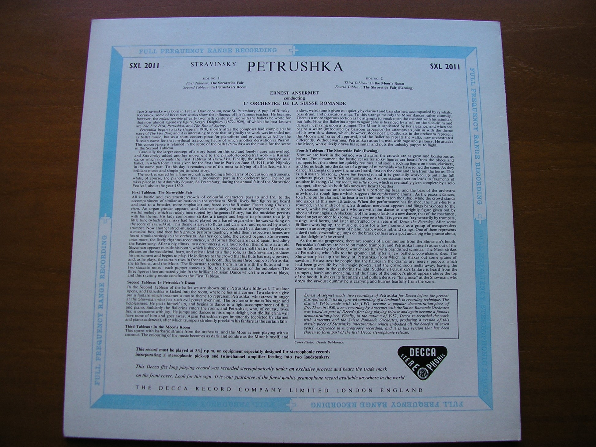 SXL 2011  STRAVINSKY: PETRUSHKA       ERNEST ANSERMET / SUISSE ROMANDE ORCHESTRA
