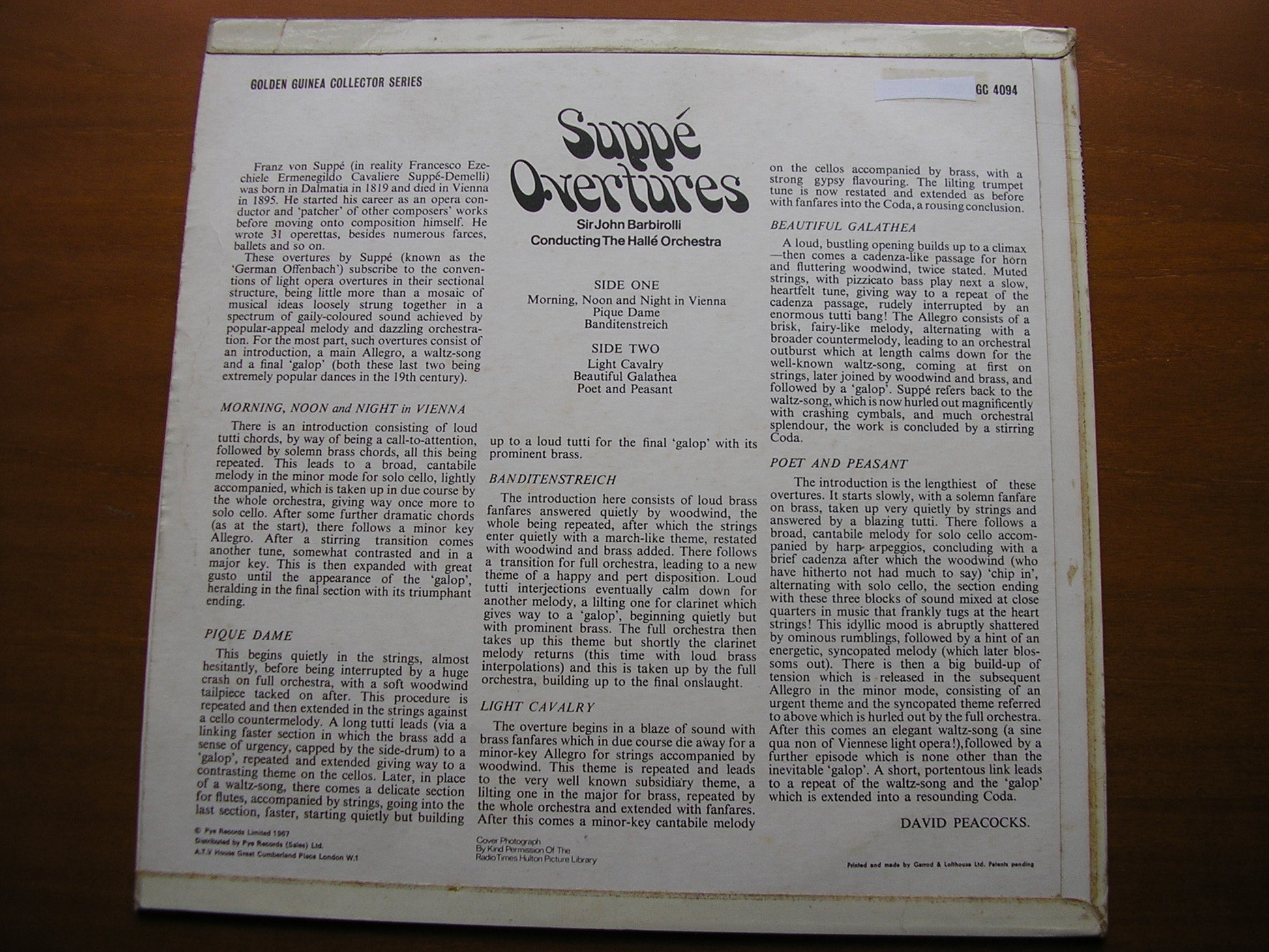 GSGC 14094  SUPPE: SIX OVERTURES    SIR JOHN BARBIROLLI / HALLE ORCHESTRA