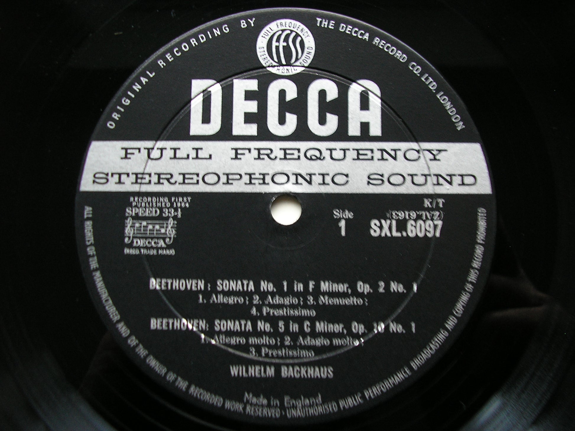 SXL 6097 BEETHOVEN: PIANO SONATAS Nos. 1 / 5 / 6 / 7 WILHELM BACKHAUS ED1