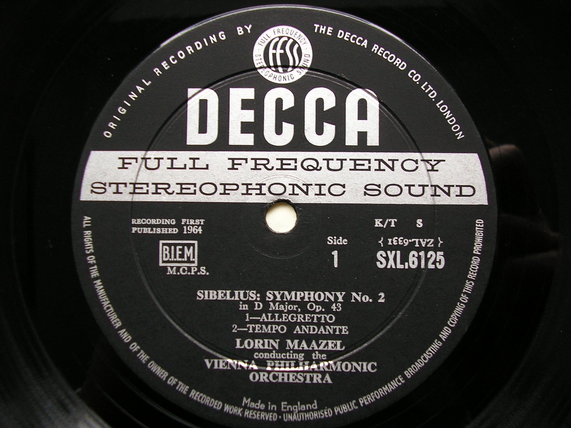 SXL 6125  SIBELIUS: SYMPHONY No. 2     LORIN MAAZEL / VIENNA PHILHARMONIC ORCHESTRA