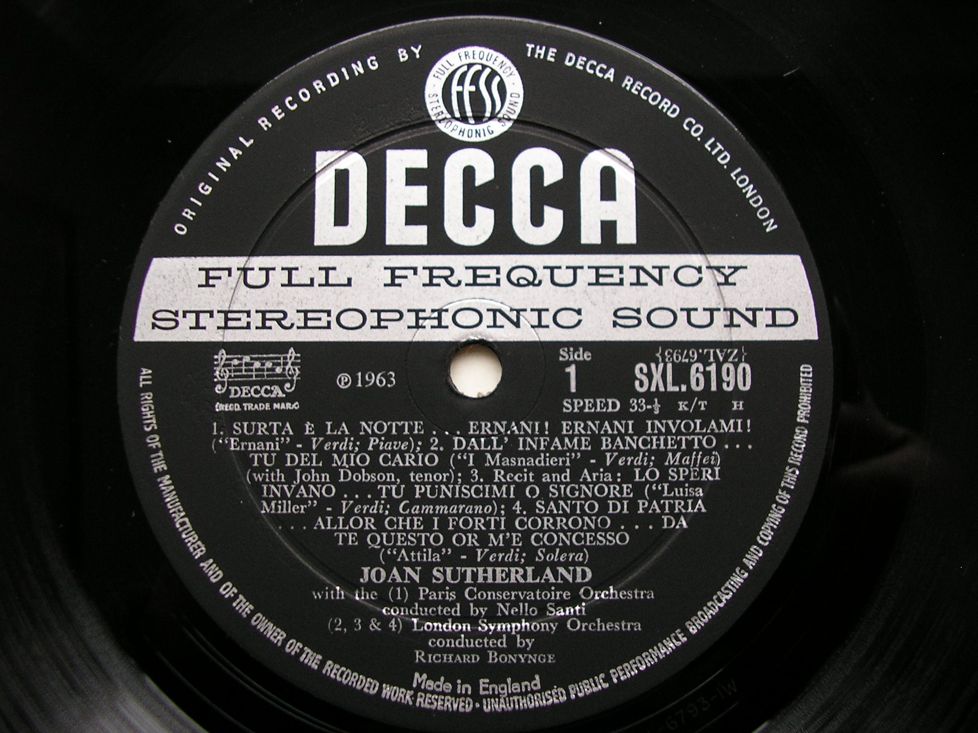 SXL 6190 SUTHERLAND SINGS VERDI BONYNGE / SANTI / PRITCHARD / MOLINARI-PRADELLI ED1