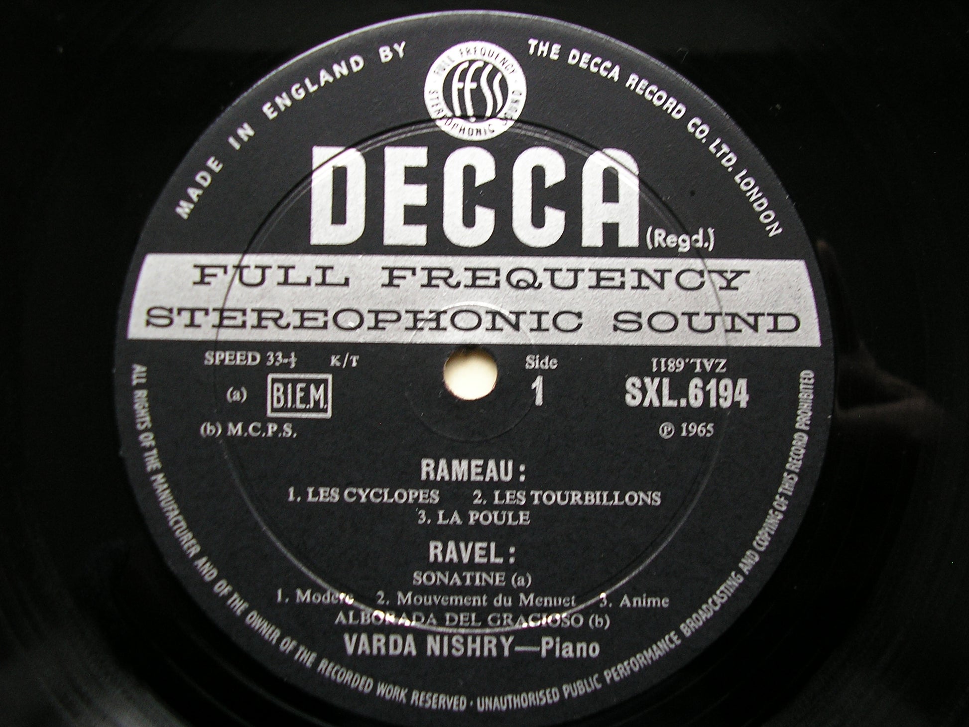 SXL 6194 RAMEAU: Les Cyclopes / Les Tourbillons / La Poule / RAVEL: Sonatine / Alborada del Gracioso / FRANCK: Prelude, Aria & Finale     VARDA NISHRY
