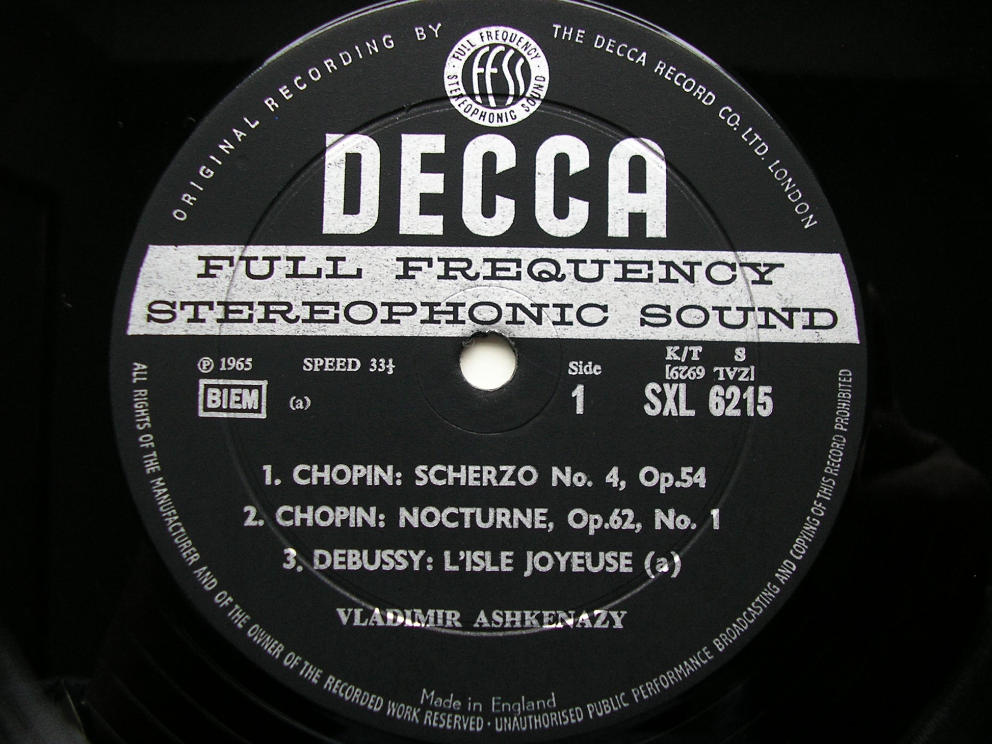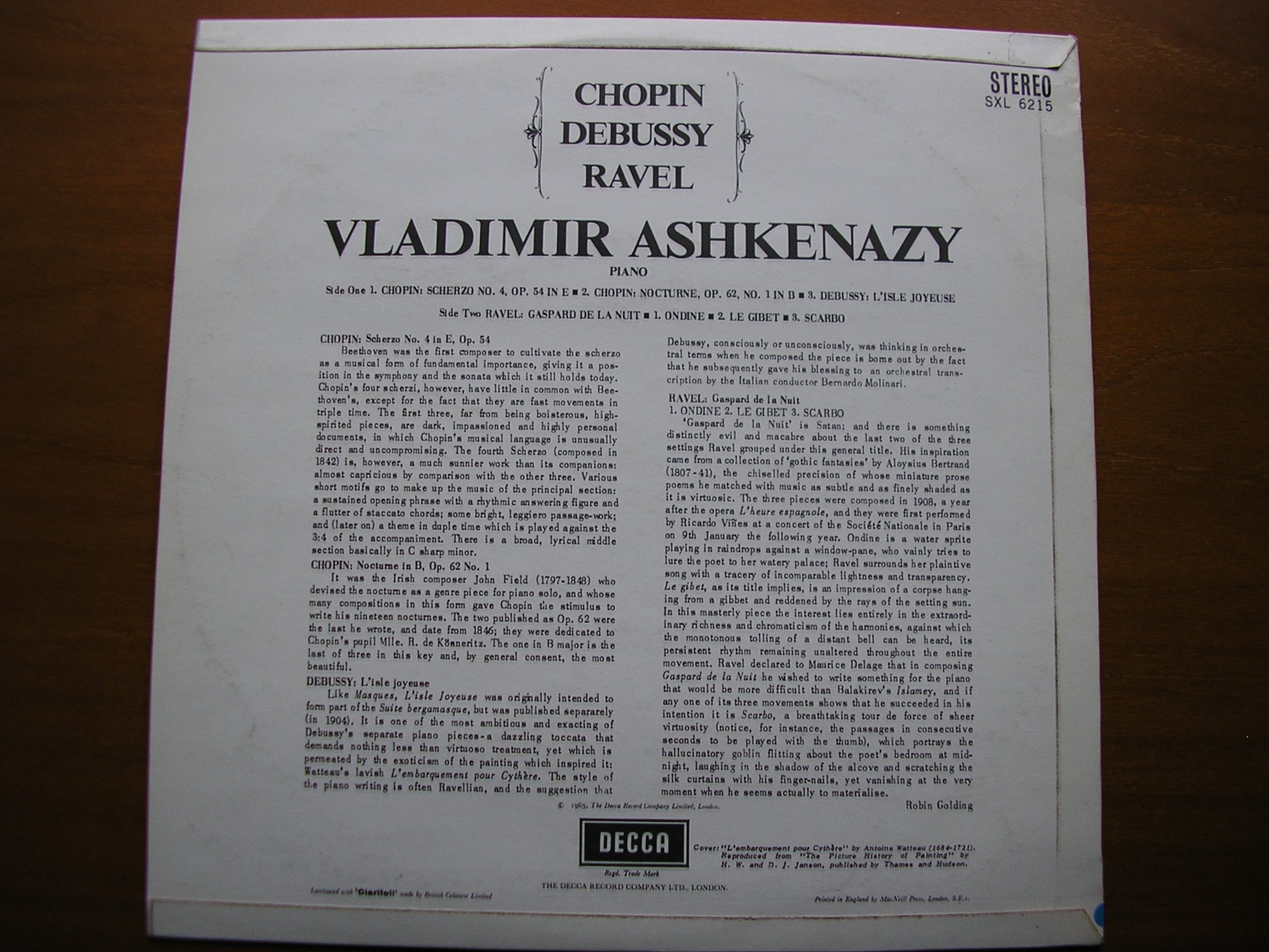 SXL 6215 CHOPIN: SCHERZO Op. 54 / NOCTURNE Op. 62 / DEBUSSY: L'ISLE JOYEUSE / RAVEL: GASPARD DE LA NUIT     VLADIMIR ASHKENAZY