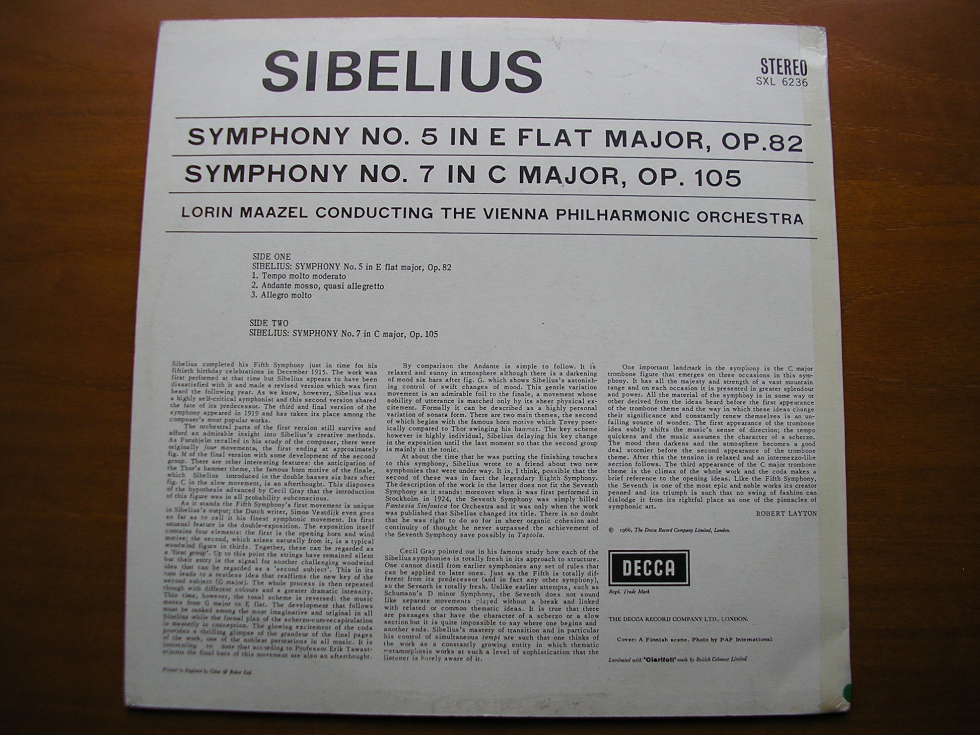 SXL 6236 SIBELIUS: SYMPHONIES Nos. 5 & 7 MAAZEL / VIENNA PHILHARMONIC ED2