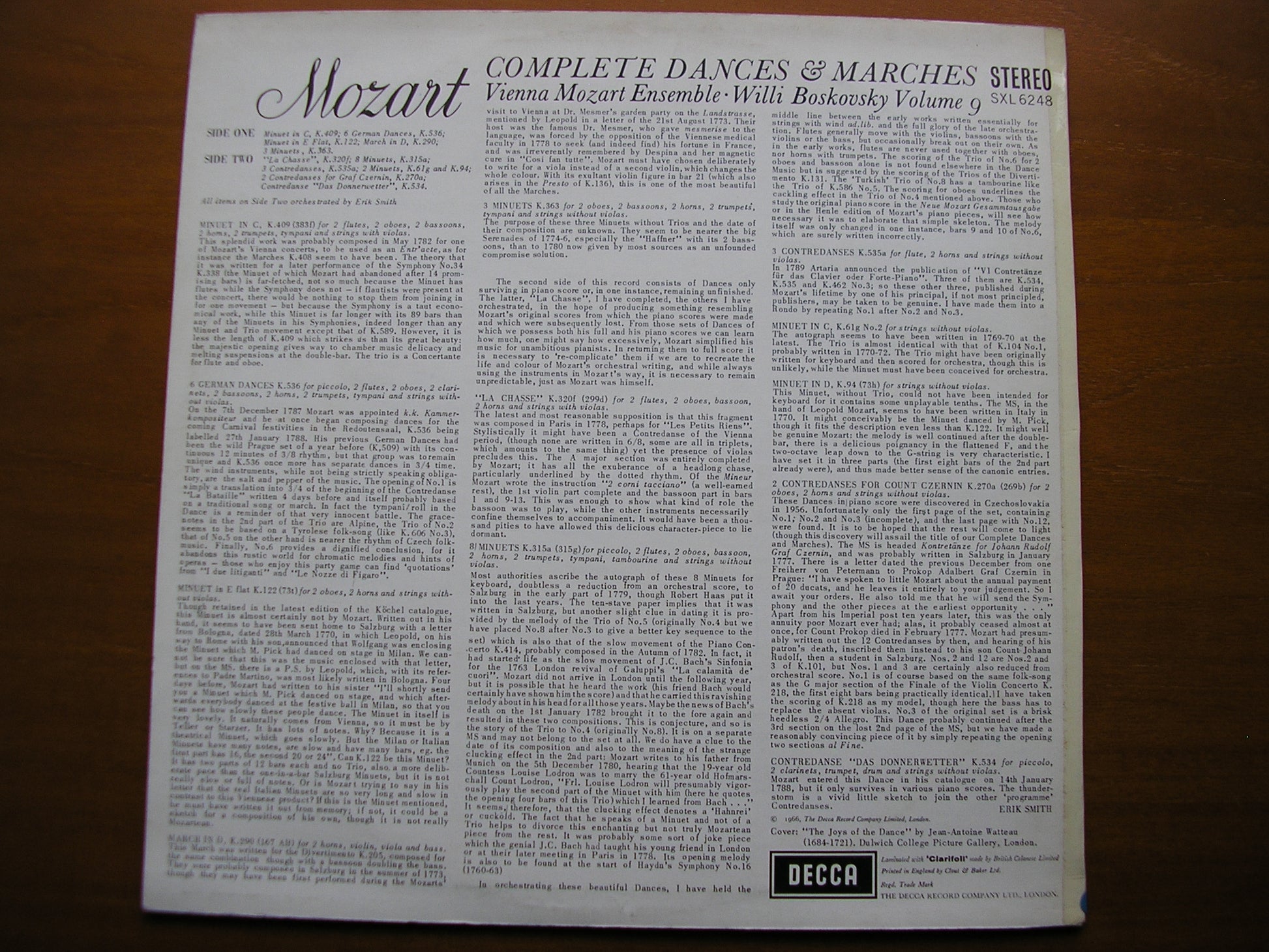 SXL 6248 MOZART: COMPLETE DANCES & MARCHES  Volume 9    WILLI BOSKOVSKY / VIENNA MOZART ENSEMBLE