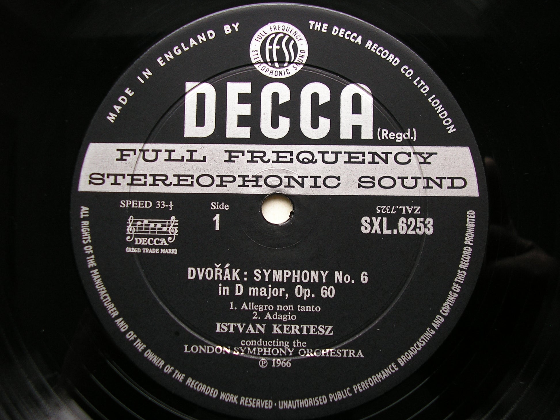 SXL 6253 DVORAK: SYMPHONY No. 6 / CARNIVAL OVERTURE     ISTVAN KERTESZ / LONDON SYMPHONY ORCHESTRA