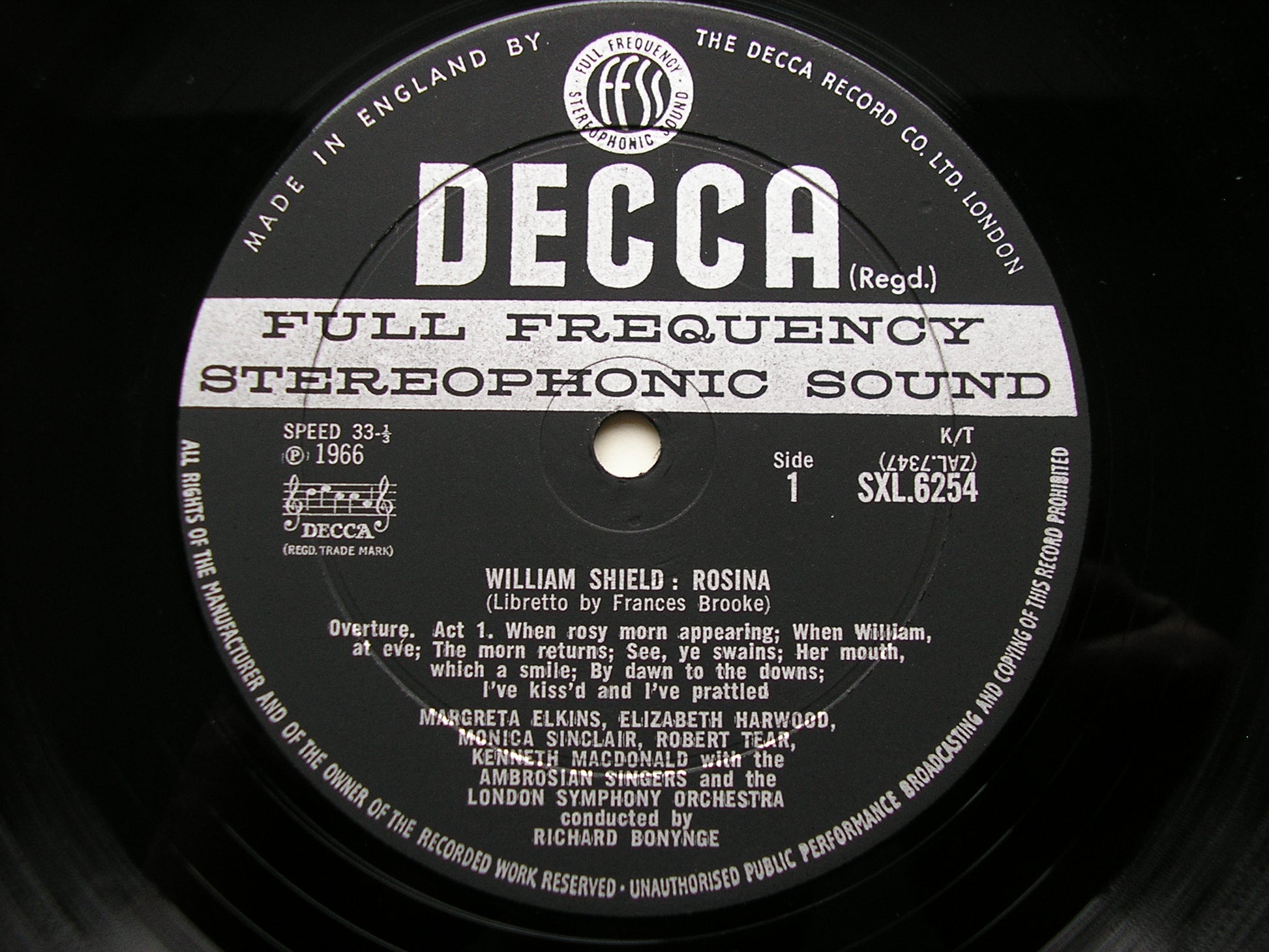 SXL 6254 SHIELD: ROSINA complete opera SOLOISTS / LONDON SYMPHONY / BONYNGE ED2