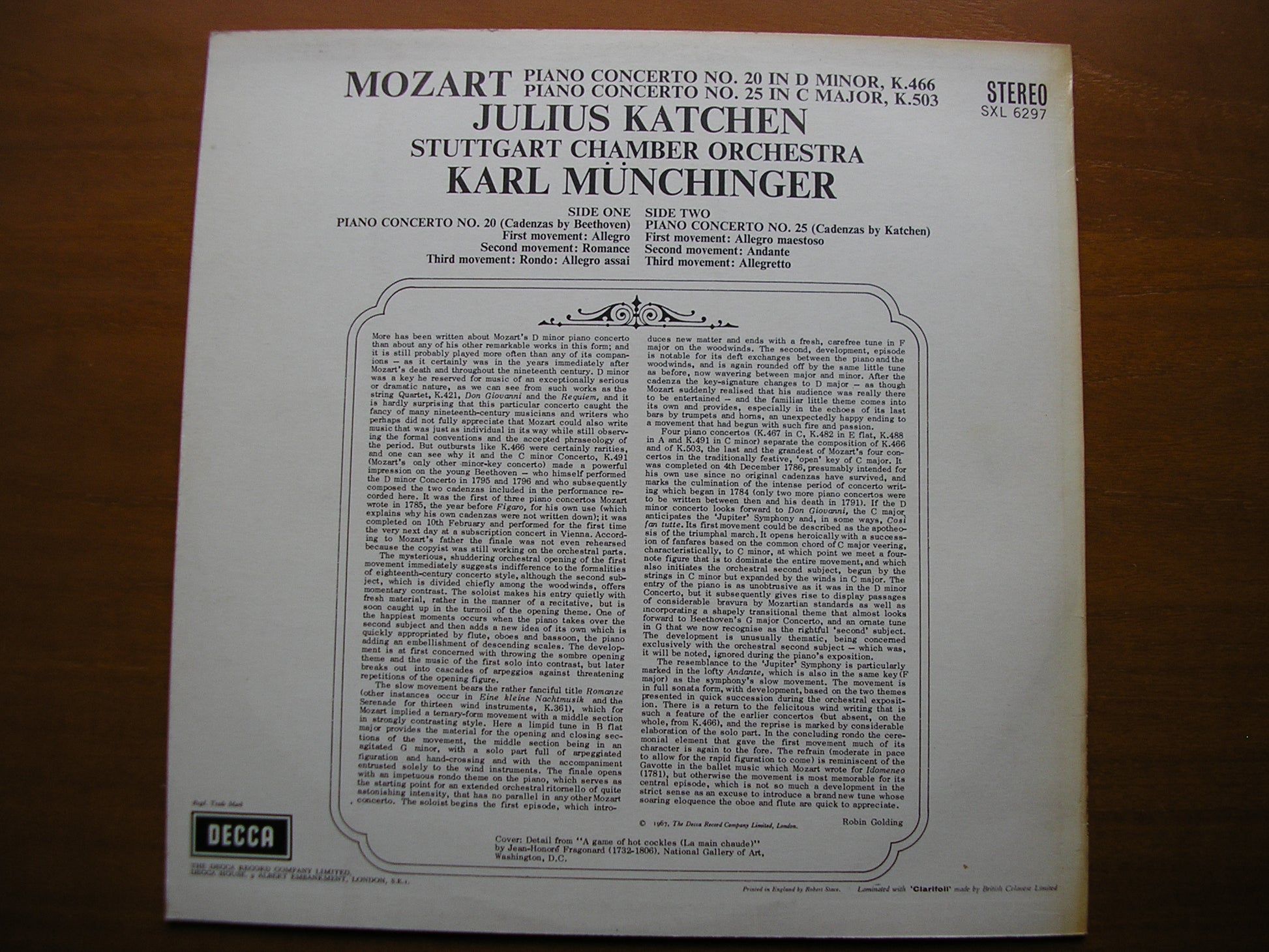 SXL 6297 MOZART: PIANO CONCERTOS Nos. 20 & 25 KATCHEN / STUTTGART CHAMBER ORCHESTRA / MUNCHINGER ED2