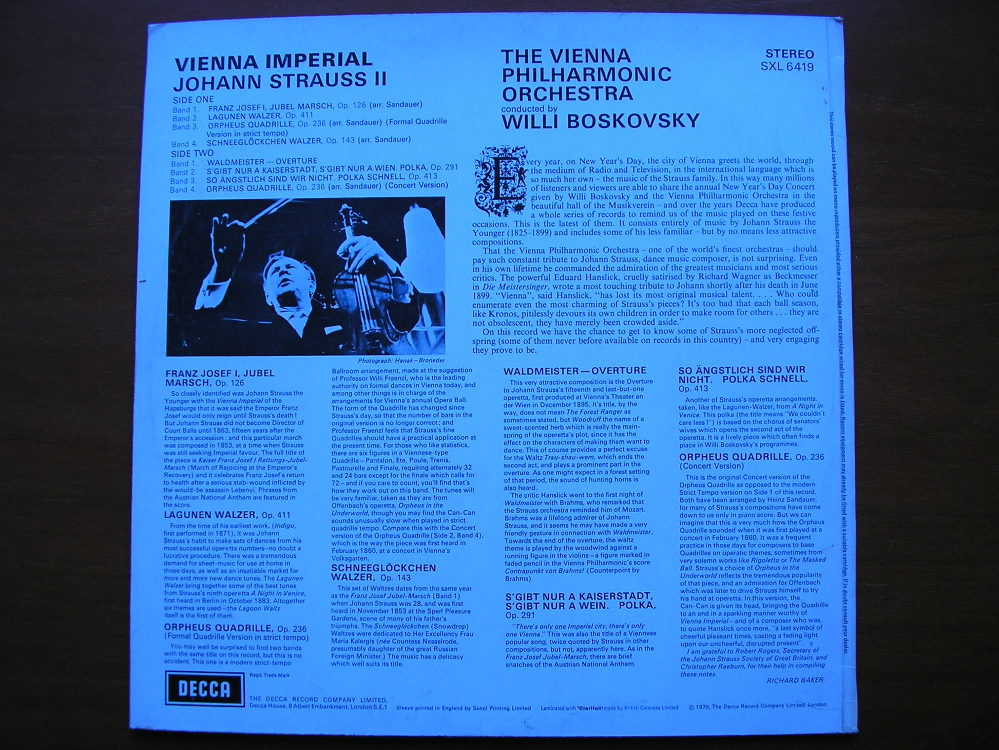 SXL 6419 VIENNA IMPERIAL: MUSIC OF JOHANN STRAUSS      WILLI BOSKOVSKY / VIENNA PHILHARMONIC ORCHESTRA
