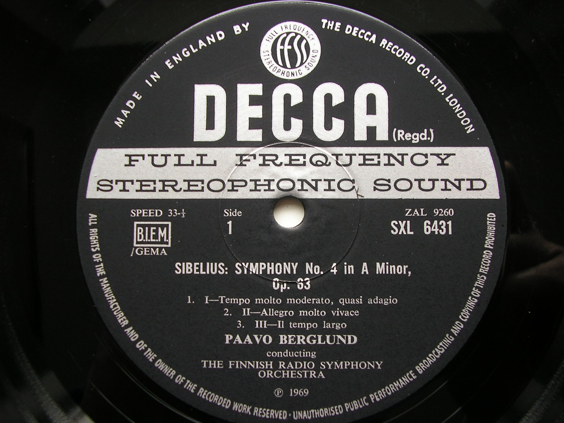SXL 6431 SIBELIUS: SYMPHONY No. 4 / SALLINEN: MAUERMUSIK BERGLUND / FINNISH RADIO ORCHESTRA ED3