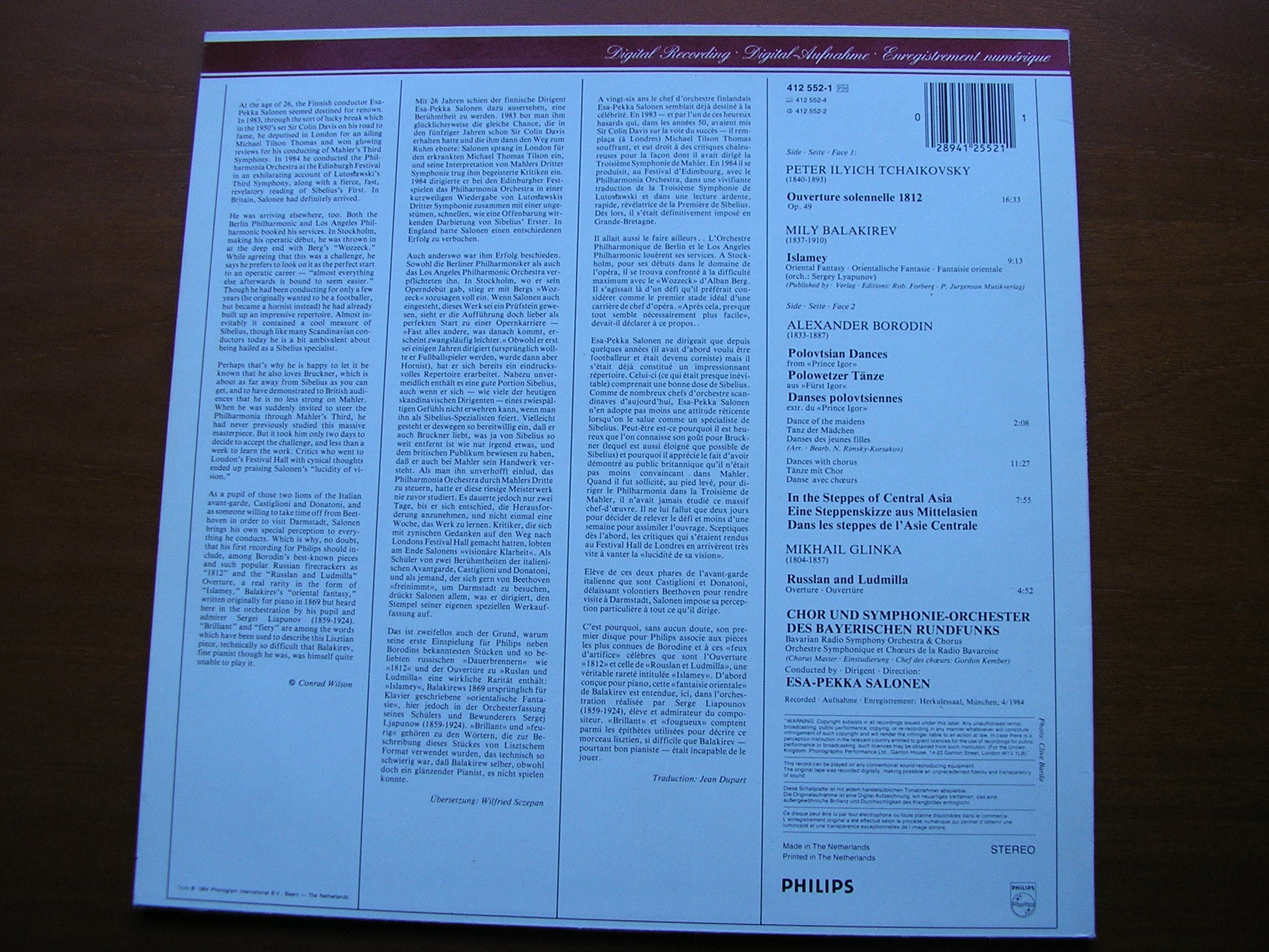 412 552  TCHAIKOVSKY: 1812 / BORODIN: POLOVTSIAN DANCES / BALAKIREV: ISLAMEY    ESA-PEKKA SALONEN / BAVARIAN RADIO SYMPHONY ORCHESTRA