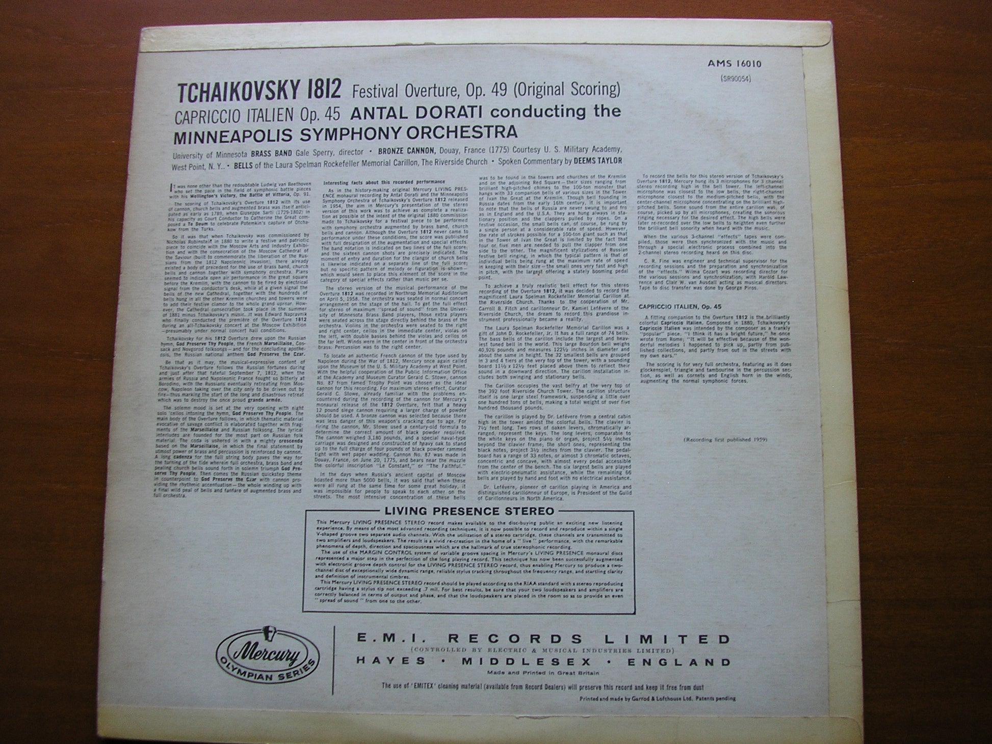 AMS 16010  TCHAIKOVSKY: 1812 / CAPRICCIO ITALIEN      ANTAL DORATI / MINNEAPOLIS SYMPHONY ORCHESTRA