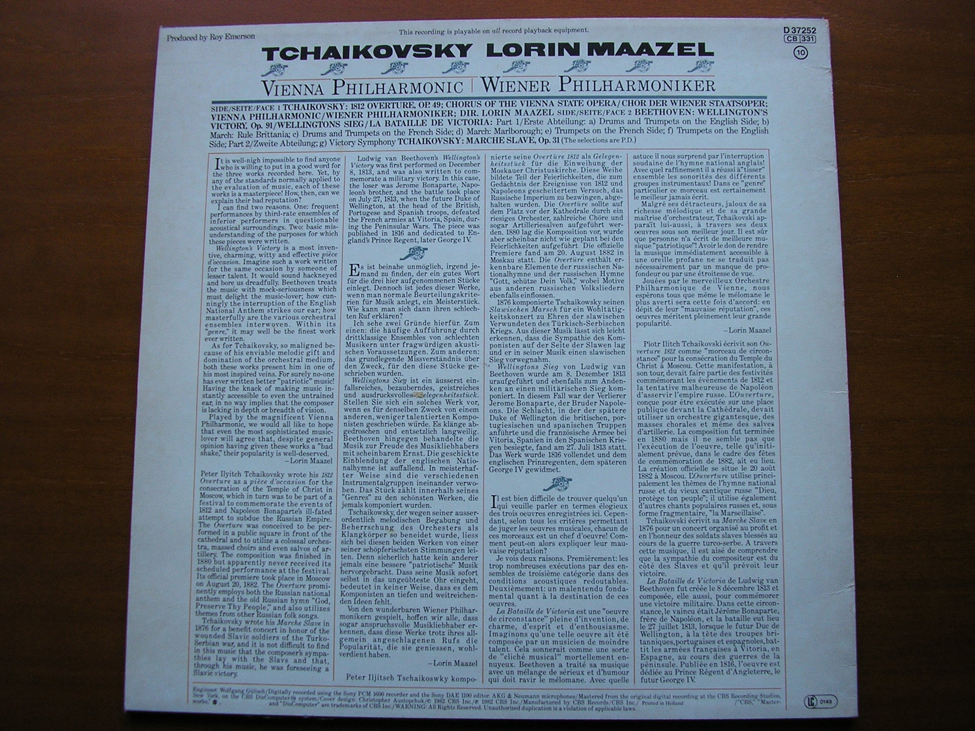 D37252  TCHAIKOVSKY: 1812 / MARCHE SLAVE / BEETHOVEN: WELLINGTON'S VICTORY   LORIN MAAZEL / VIENNA PHILHARMONIC ORCHESTRA