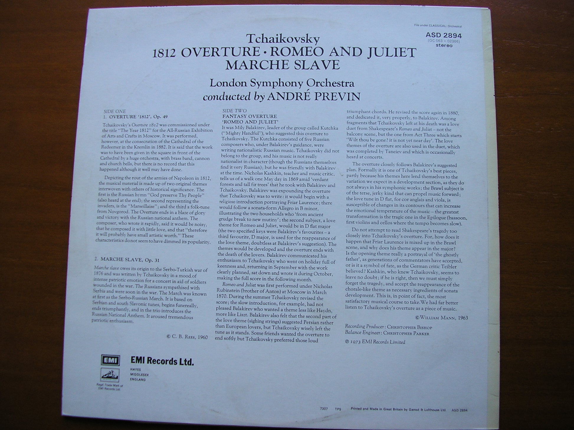 ASD 2894  TCHAIKOVSKY: 1812 / MARCHE SLAVE / ROMEO & JULIET     ANDRE PREVIN / LONDON SYMPHONY ORCHESTRA