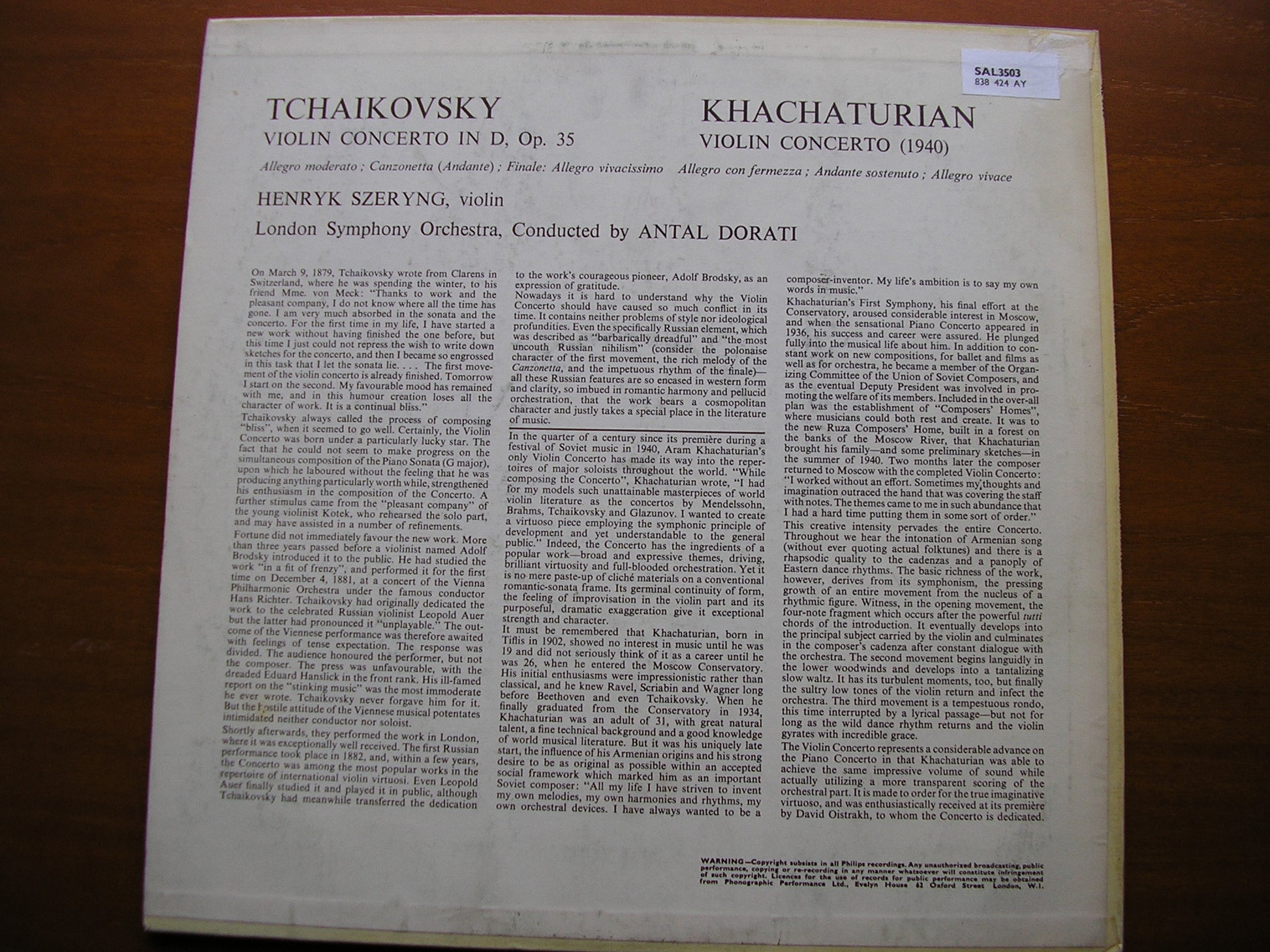 SAL 3503  TCHAIKOVSKY & KHACHATURIAN: VIOLIN CONCERTOS   HENRYK SZERYNG / LONDON SYMPHONY ORCHESTRA / ANTAL DORATI