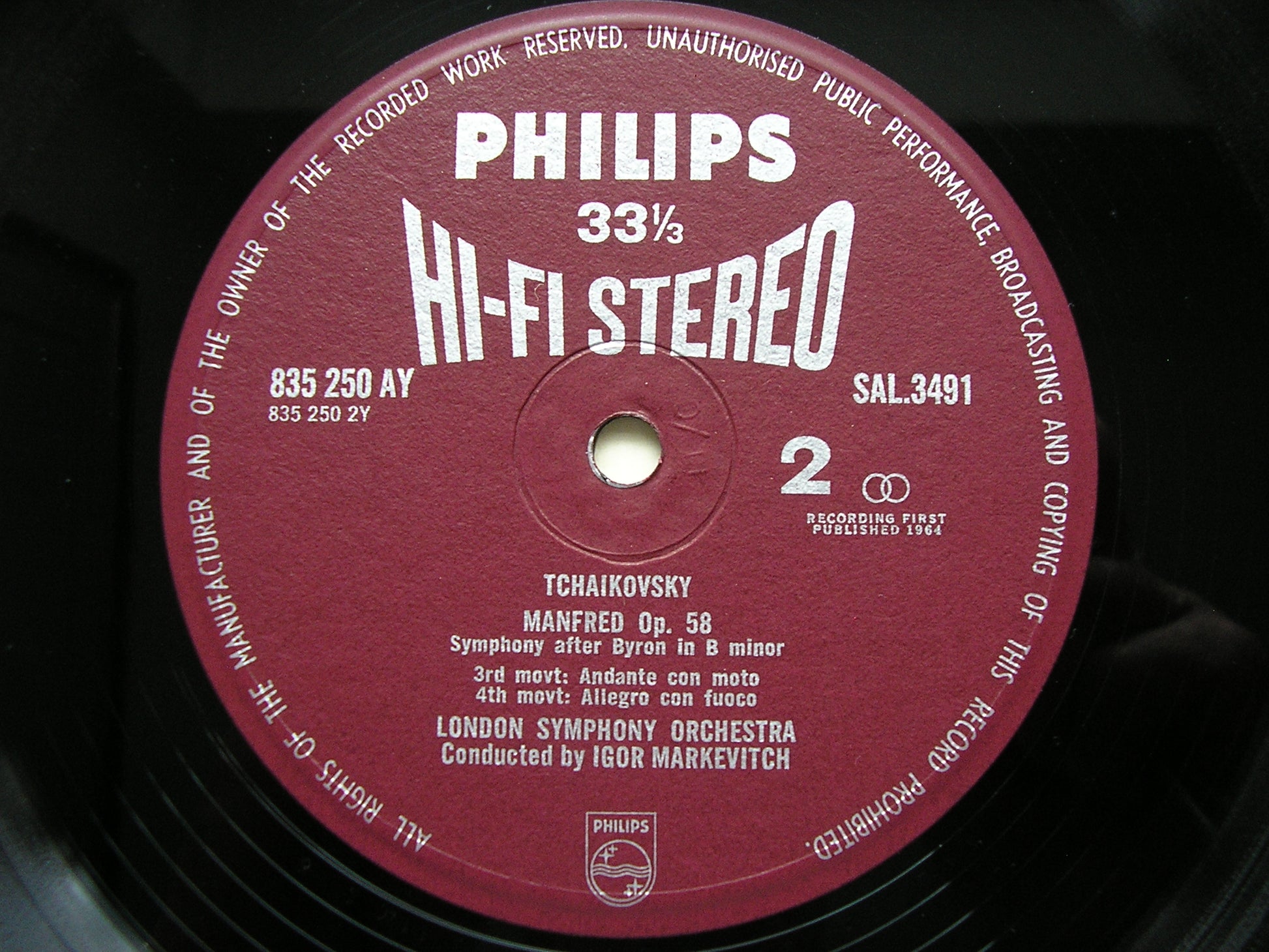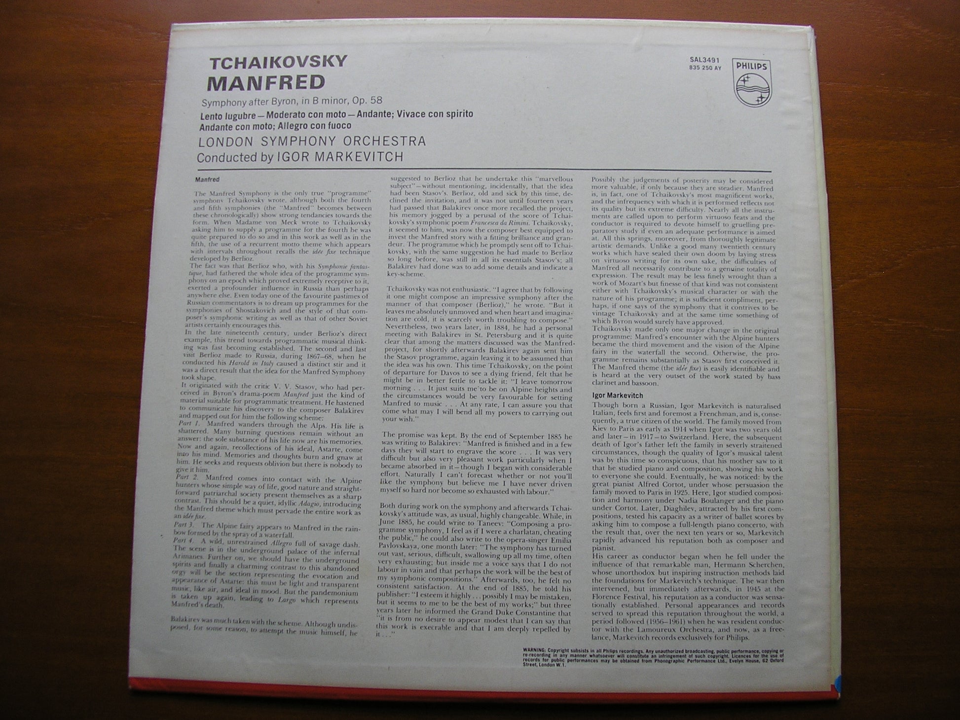 SAL 3491  TCHAIKOVSKY: MANFRED     IGOR MARKEVITCH / LONDON SYMPHONY ORCHESTRA