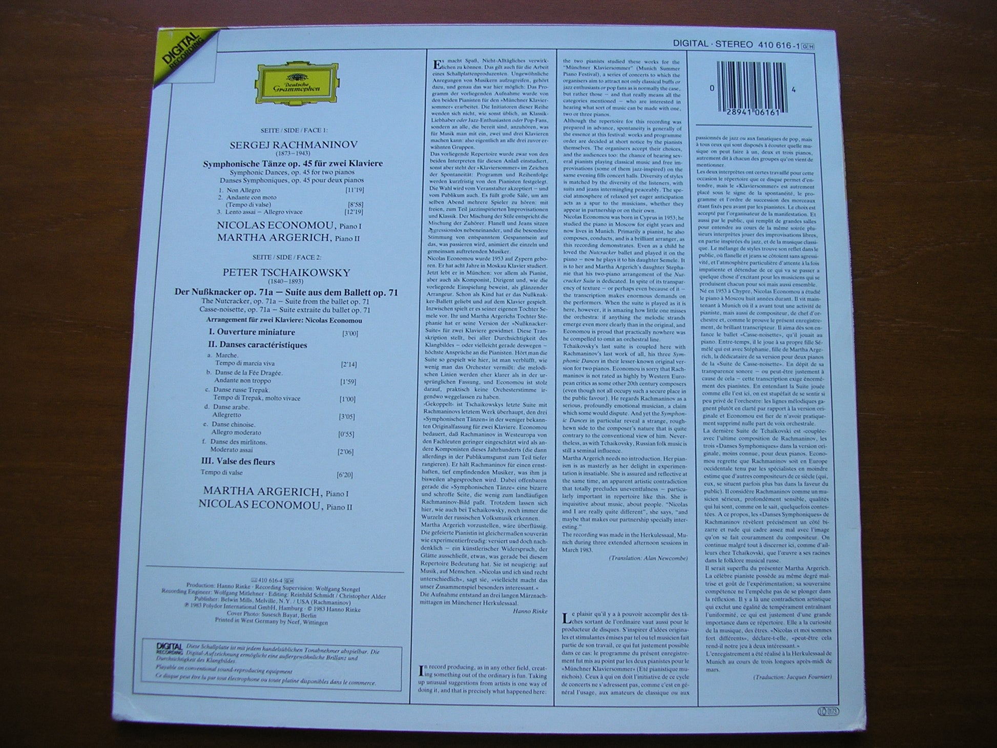 410 616  TCHAIKOVSKY: NUTCRACKER SUITE / RACHMANINOV: SYMPHONIC DANCES  MARTHA AREGERICH / NICOLAS ECONOMOU