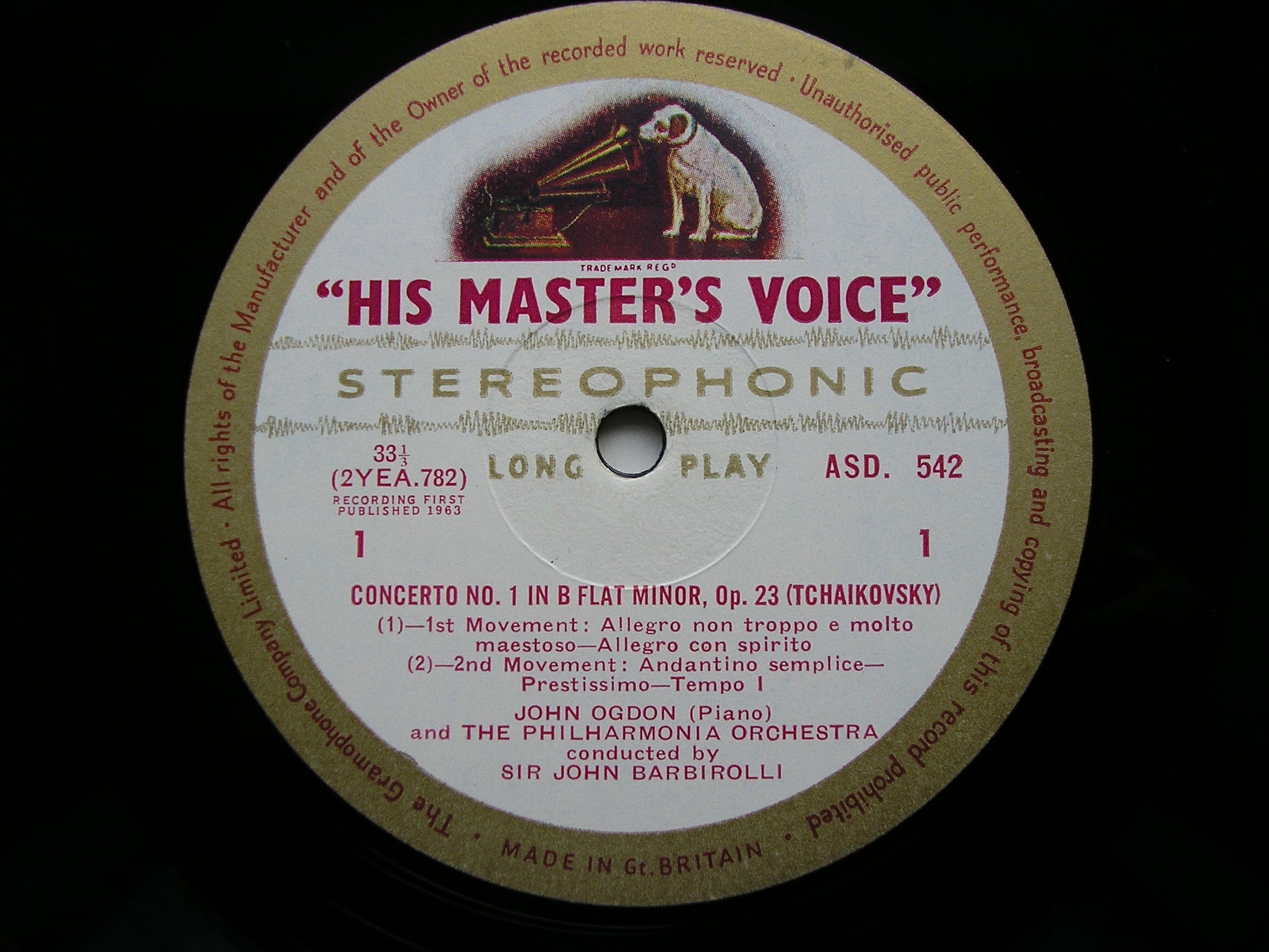 TCHAIKOVSKY: PIANO CONCERTO NO. 1 / FRANCK: SYMPHONIC VARIATIONS OGDON / PHILHARMONIA / BARBIROLLI ASD 542