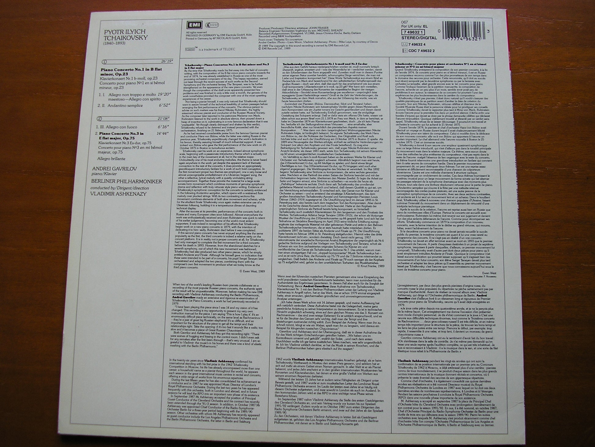 749632  TCHAIKOVSKY: PIANO CONCERTOS Nos. 1 & 3    ANDREI GAVRILOV / BERLIN PHILHARMONIC ORCHESTRA / VLADIMIR ASHKENAZY