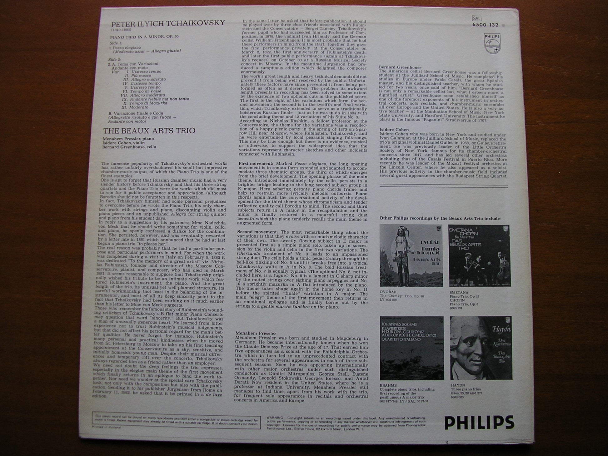 6500 132  TCHAIKOVSKY: PIANO TRIO in A      THE BEAUX ARTS TRIO