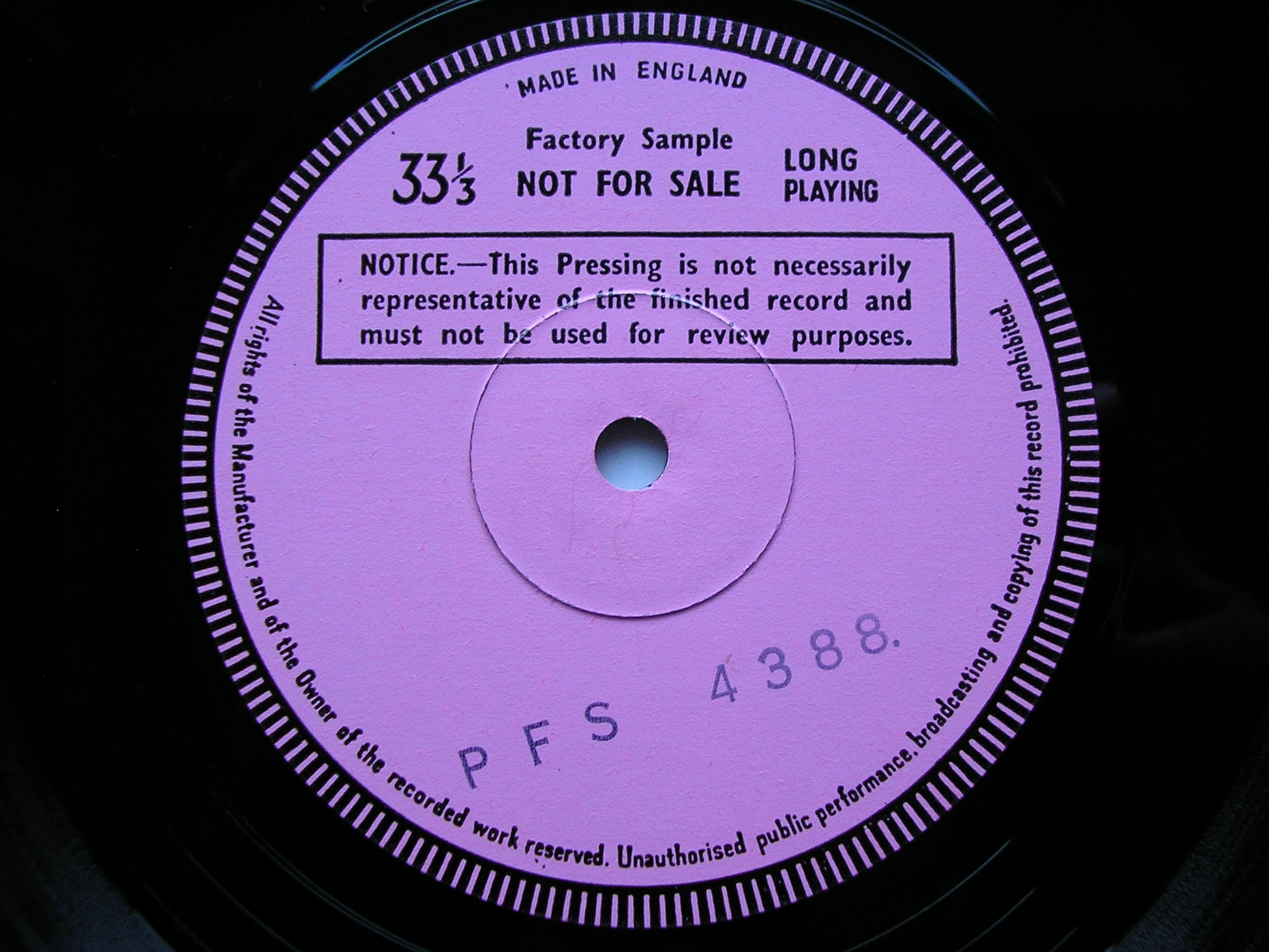We do our very best to grade records honestly and accurately, but we do occasionally make mistakes, and our priority is to rectify problems to the satisfaction of the customer. With a stock of over 30,000 LPs we do not claim to have auditioned every record in our catalogue, but every LP is examined carefully during the listing process and any suspicious looking marks are auditioned before grading.