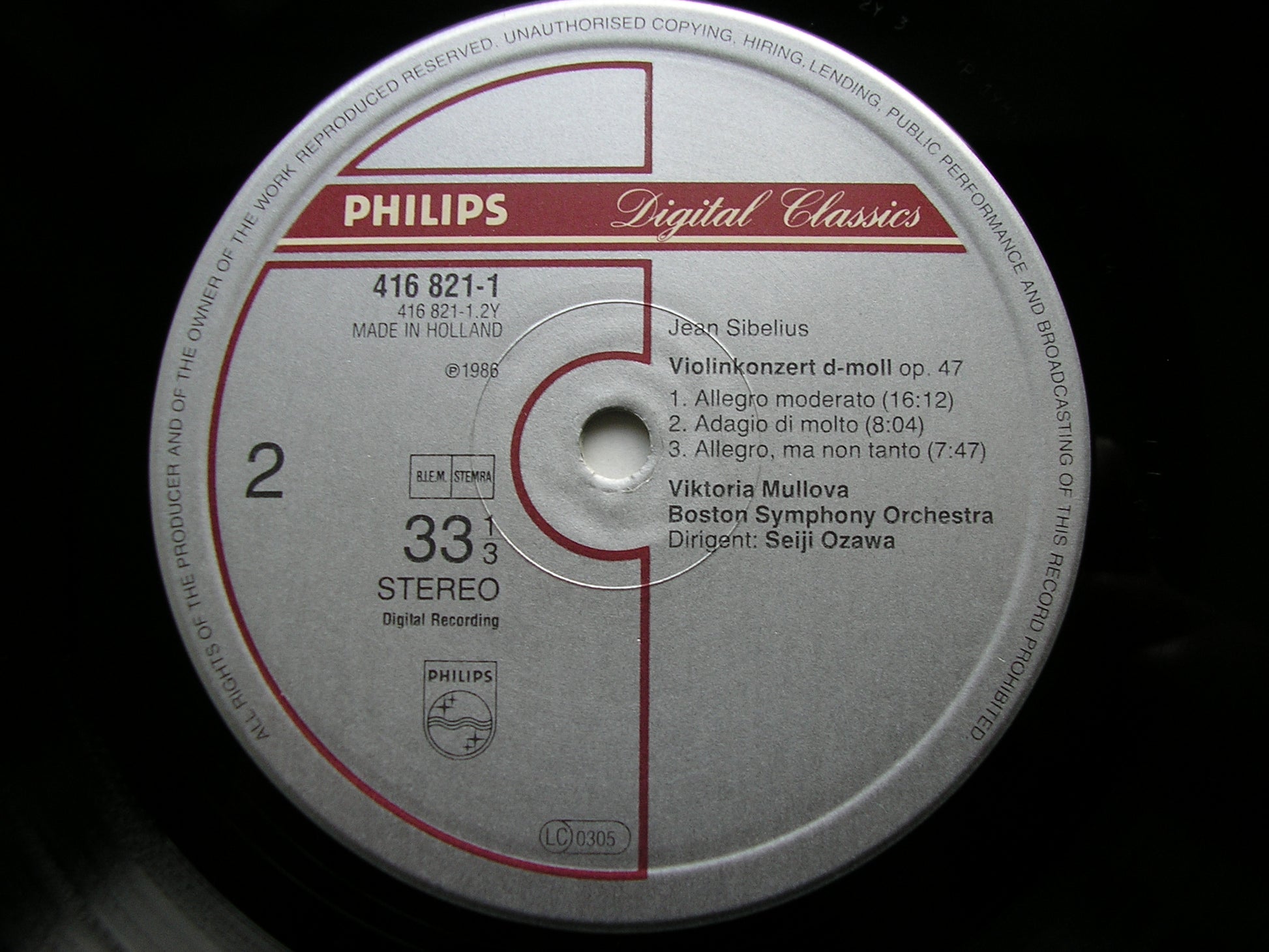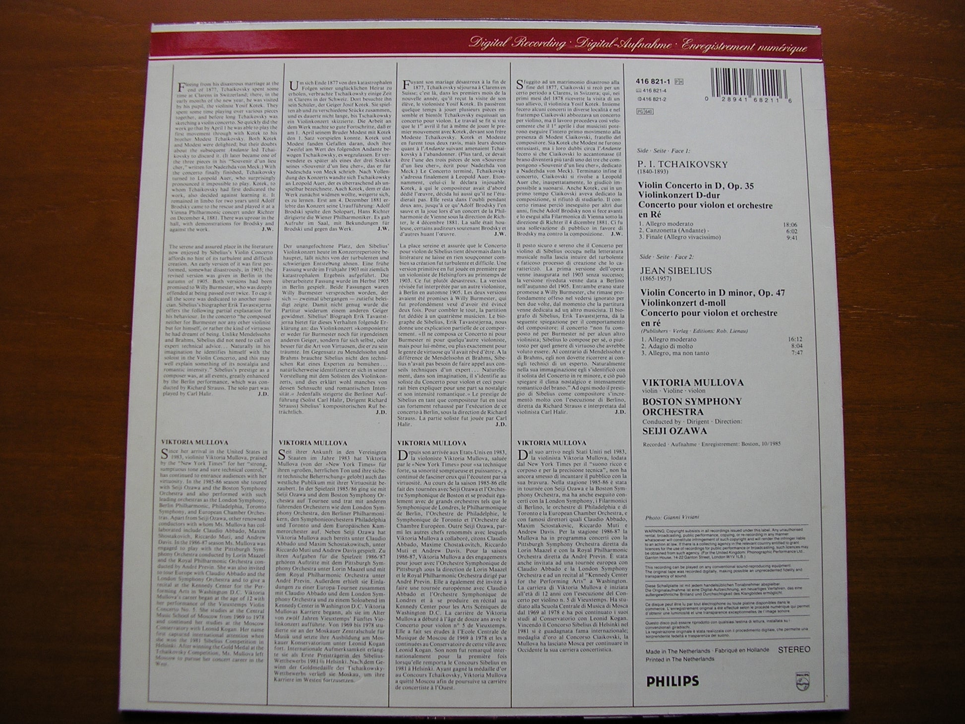 416 821  TCHAIKOVSKY & SIBELIUS: VIOLIN CONCERTOS    VIKTORIA MULLOVA / BOSTON SYMPHONY ORCHESTRA / SEIJI OZAWA