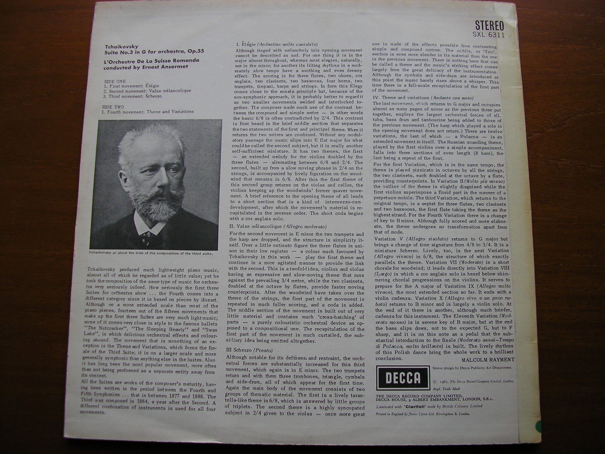 TCHAIKOVSKY: SUITE No. 3 RICCI / SUISSE ROMANDE / ANSERMET SXL 6311